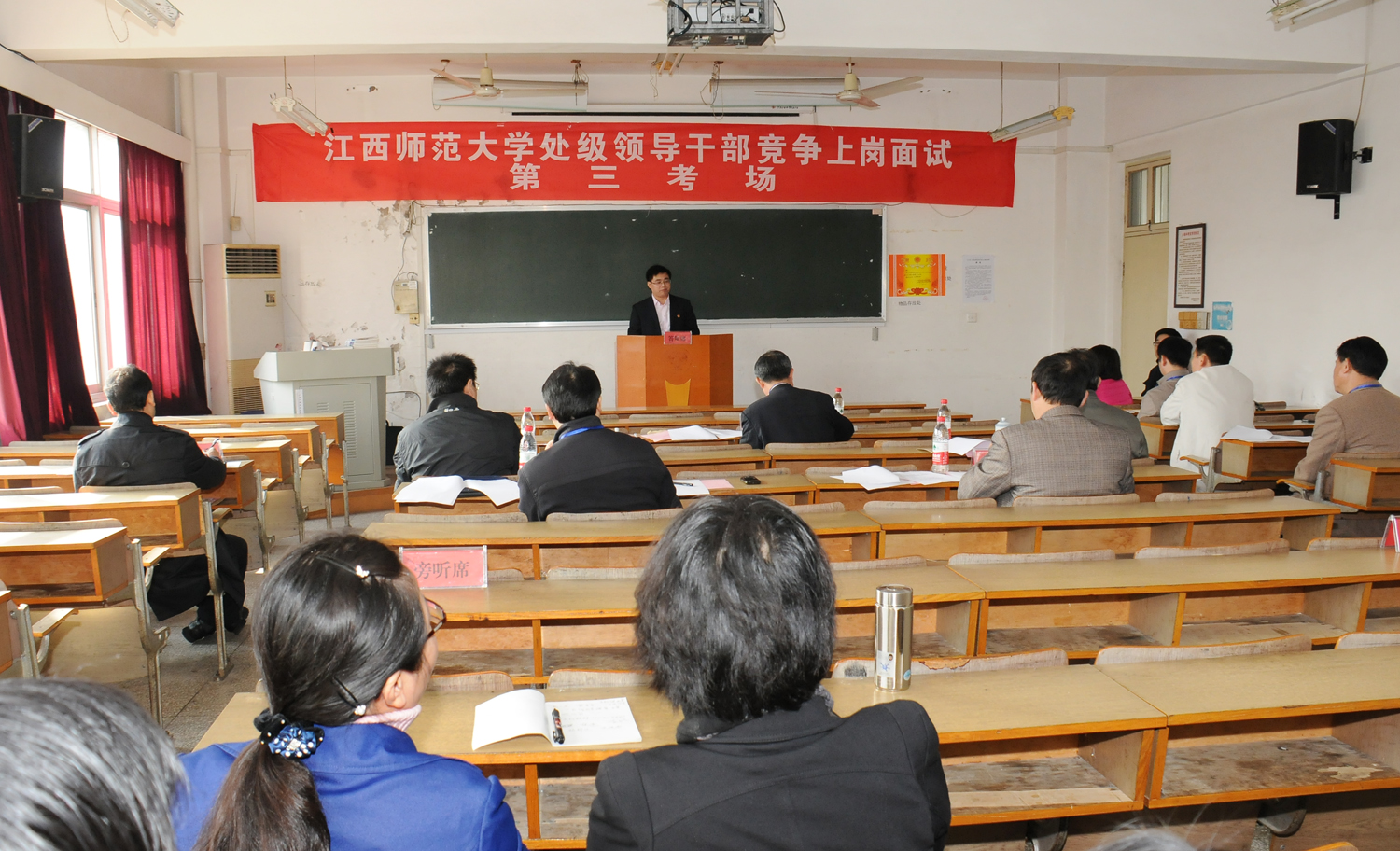 11月17日下午,我校今年第二批处级领导职位竞争上岗面试在青山湖校区综合楼举行,35名通过笔试选拔的干部按照所报考的职位和抽签顺序分3个考场参加了面试。