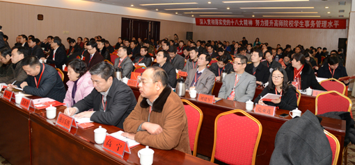 12月17日上午,全国高等师范院校学生工作研究会第24届年会开幕式在我校白鹿会馆二楼报告厅举行。教育部思政司副司长王光彦作了《深入学习贯彻党的十八大精神,扎实推进大学生思想政治教育工作》的专题报告。来自北京师大、华中师大等全国46所高等师范院校分管校领导及学生工作部门负责人等130余名代表及我校各学院党委副书记参加会议。