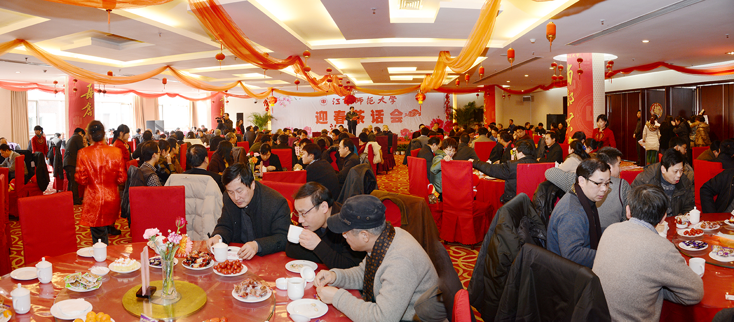 在共叙2012年丰收成果,展望学校未来前景蓝图的喜庆气氛中,校党委书记陈绵水致新年贺词,校长梅国平通报了2012年全年工作,党委副书记何小平主持茶话会。