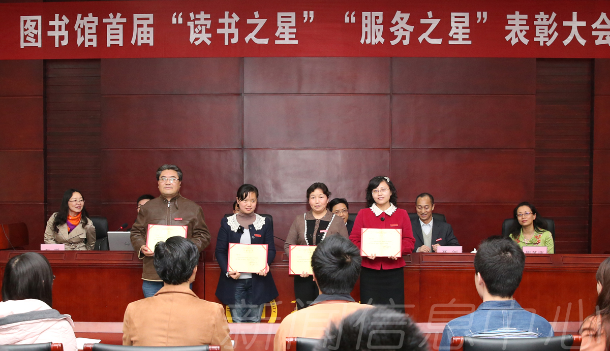 本次表彰会上,董雨、郑航等15位同学获得“读书之星”称号,任航等4位图书馆员工获得“服务之星”称号。