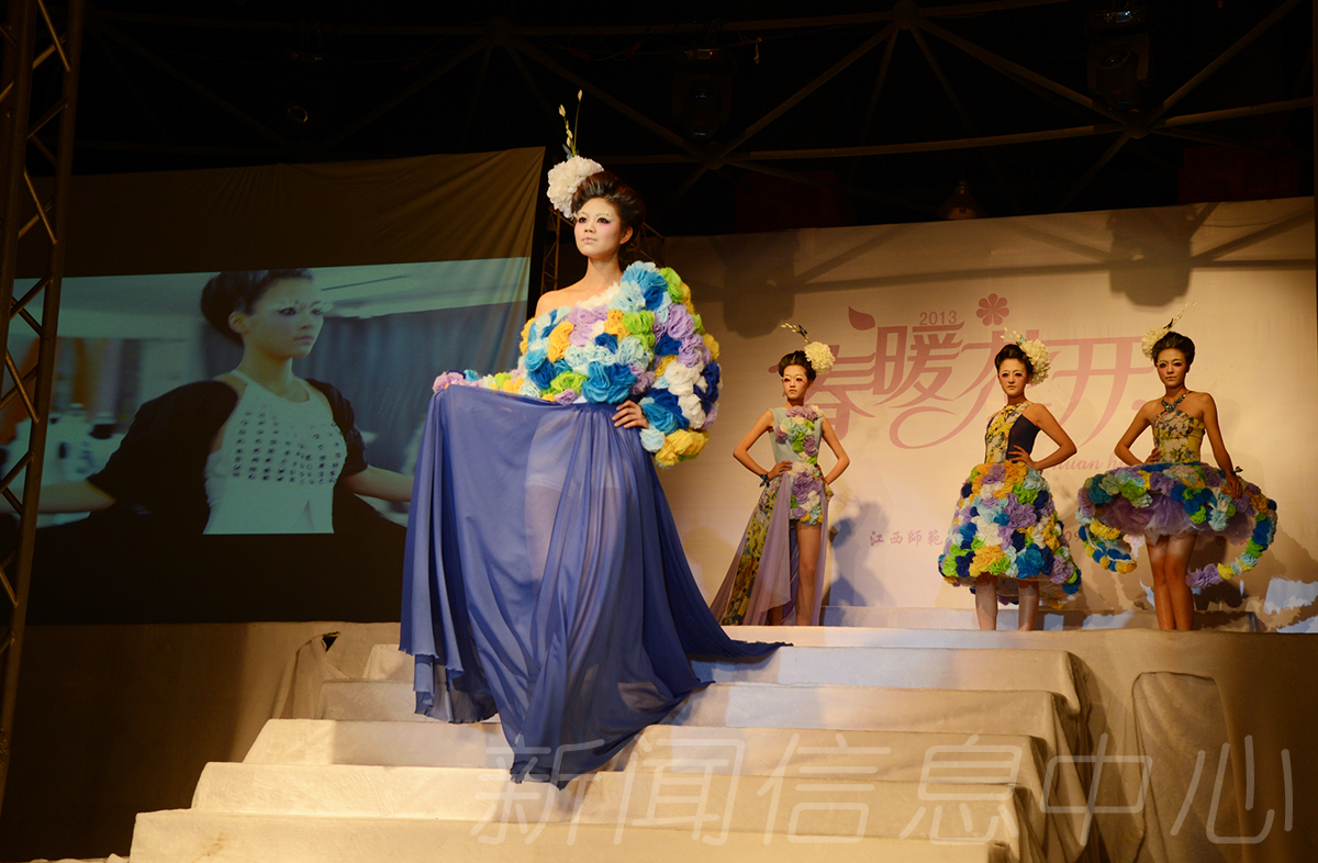 另外,服装设计系于5月19日晚在美术馆一楼大厅举办了题为“春暖花开”的服装走秀活动,副校长聂剑、赵明等到场观看了表演。活动取得了圆满成功,省内各大媒体竞相报道,产生了重大的影响。