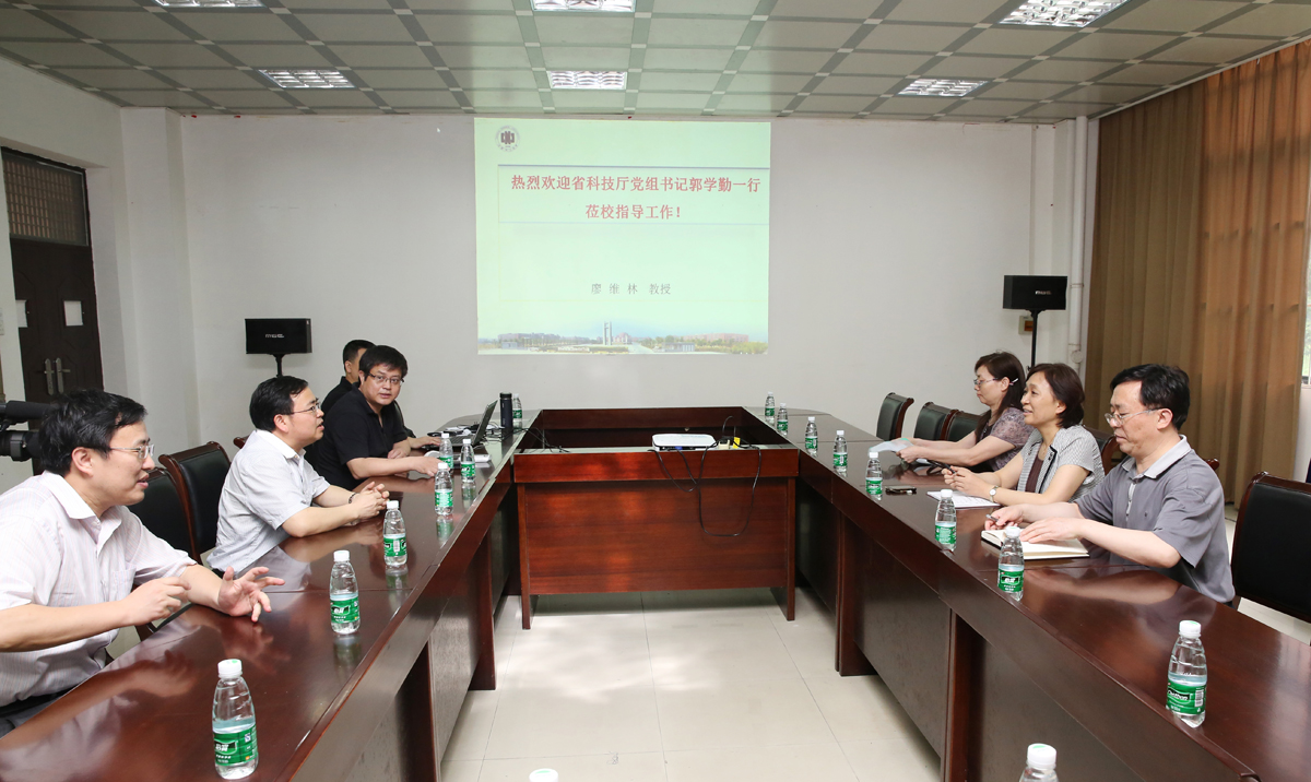 6月6日上午,省科技厅党组书记郭学勤来校考察调研,亲切看望了全国杰出专业技术人才、我校副校长、国家单糖化学合成工程技术研究中心主任廖维林教授,听取廖维林教授科研团队研发情况工作汇报。校长梅国平会见了郭学勤一行,副校长涂宗财陪同调研。