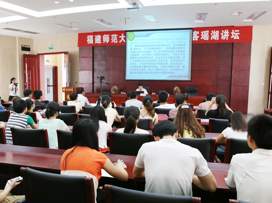 6月8日上午,福建师范大学教授、博士生导师黄汉升应邀做客“瑶湖讲坛”,在图文信息中心6202报告厅作了题为“我国体育学研究生学位论文中常见的问题”的学术报告。校长梅国平会见了黄汉升教授,代表学校对黄汉升教授来校讲学表示热烈欢迎和衷心感谢;副校长聂剑主持报告会。报告会由研究生院主办,体育学院承办,来自体育学院的硕士生导师以及研究生、本科生等100余人聆听了此次报告。