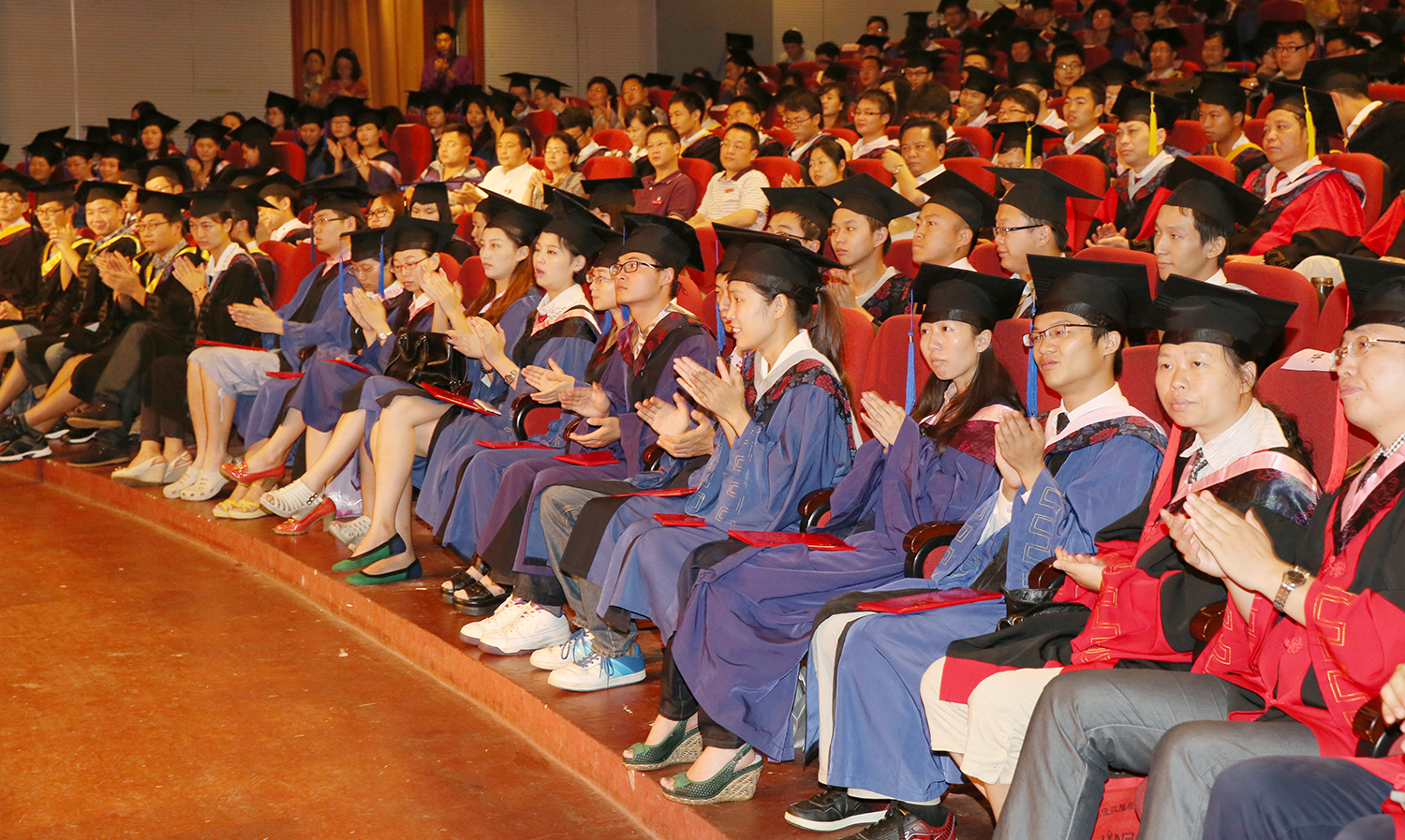 在激昂的音乐声中,校领导、校学位评定委员会成员为毕业生们一一授予学位,握手、拨穗、颁发学位证、合影……今天注定是这万名学子一生中最值得珍藏的日子。