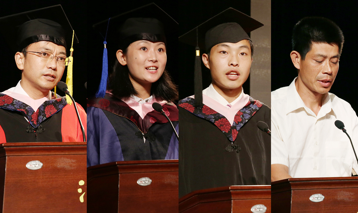 本科毕业后赴贵州支教一年,今年研究生毕业的李颖同学在发言中动情地说:“在师大求学的这八年,是学习知识、挥洒青春、迈向成长的八年,是人生中迄今为止最宝贵的八年时光,我不愿意离开,却又不得不分别,无论何时何地,我都会怀念在师大的这段青春岁月。”