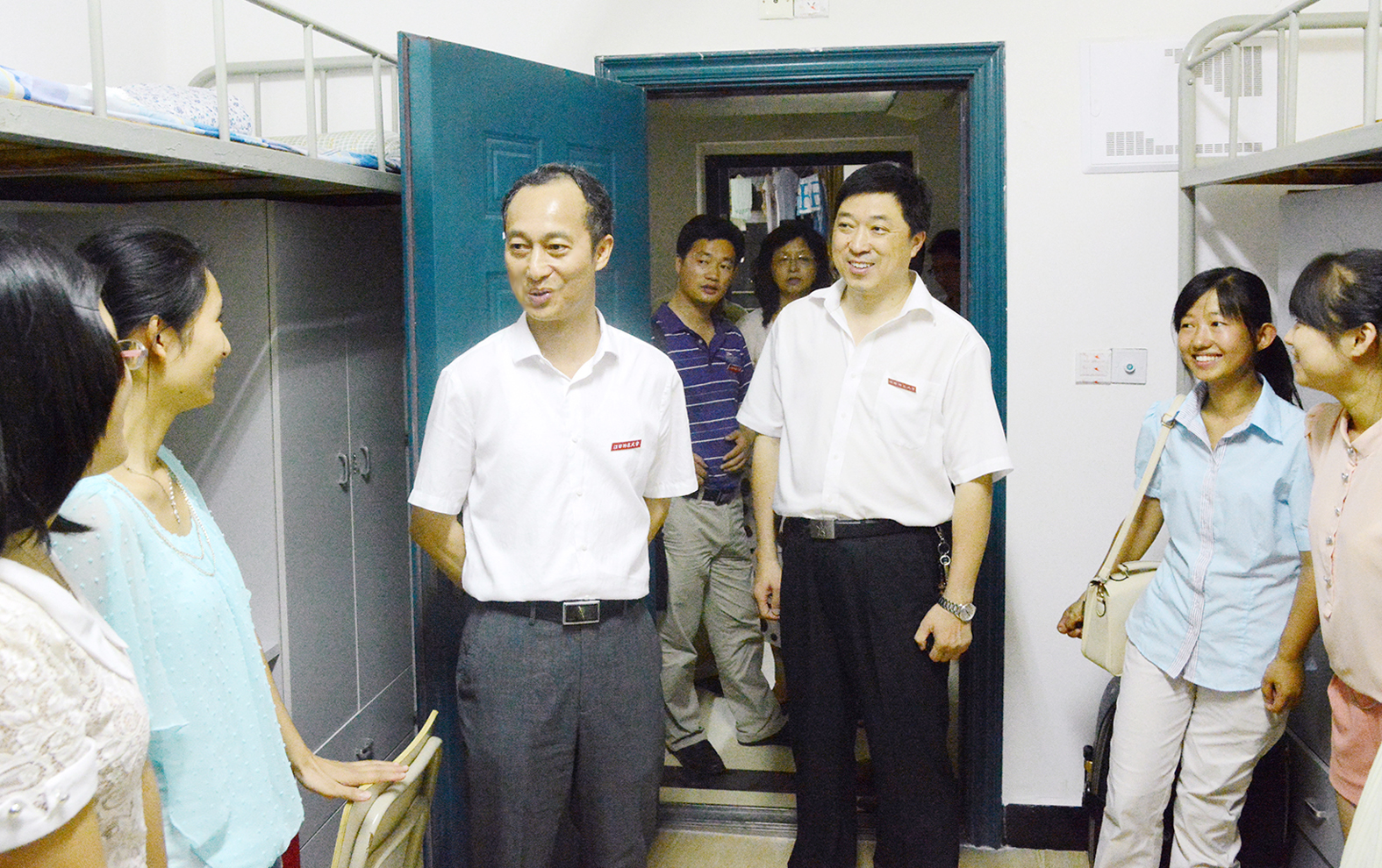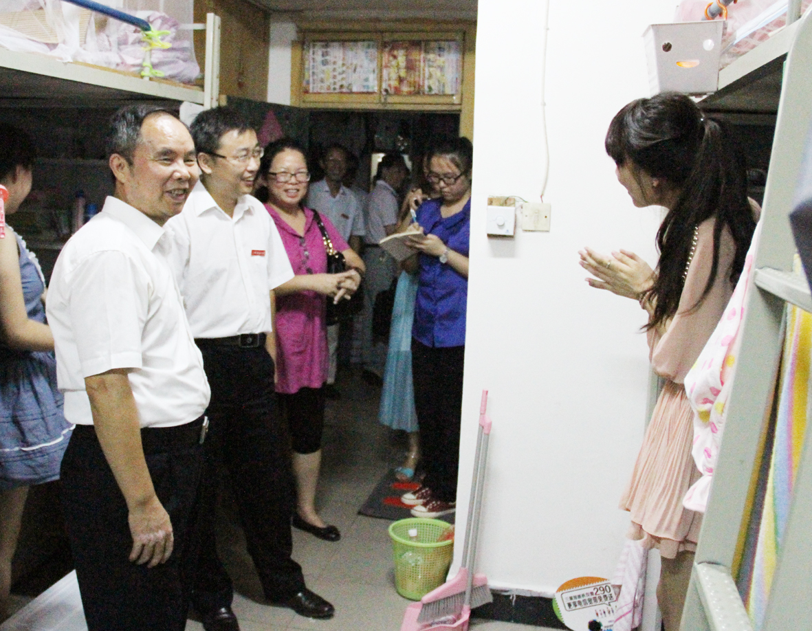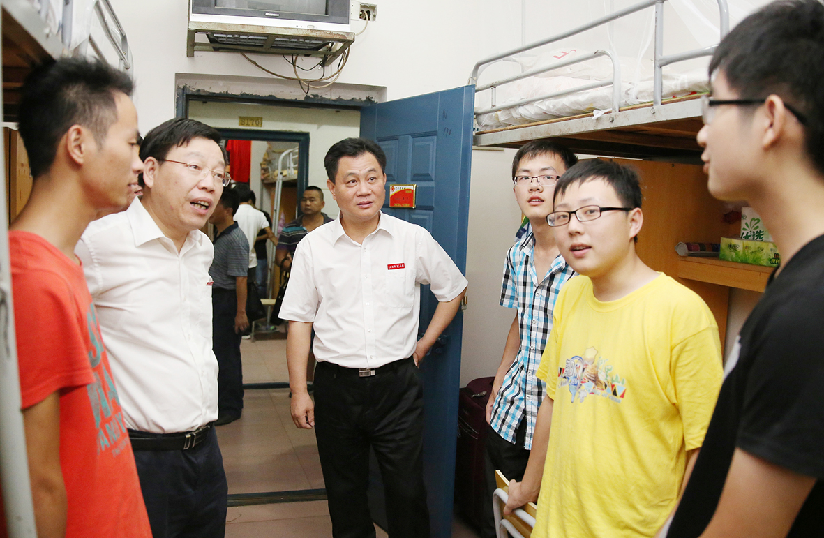 每走进一个寝室,何小平、聂剑、张艳国、黄加文、周晓朗、童颖华等领导都与新生们亲切交谈,询问同学们来自哪里、饮食是否习惯、气候是否适应,了解他们对大学环境、专业选择、未来发展等方面的想法,并耐心解答同学们提出的各种问题,叮嘱新生同学室友之间要相互关心,相互帮助,在学习、生活中遇到困难,及时跟辅导员和学院进行沟通反映。校领导鼓励新生尽早适应大学生活,把握好四年学习时光,认真规划大学生涯,认真学习,为自己的梦想而奋斗。
