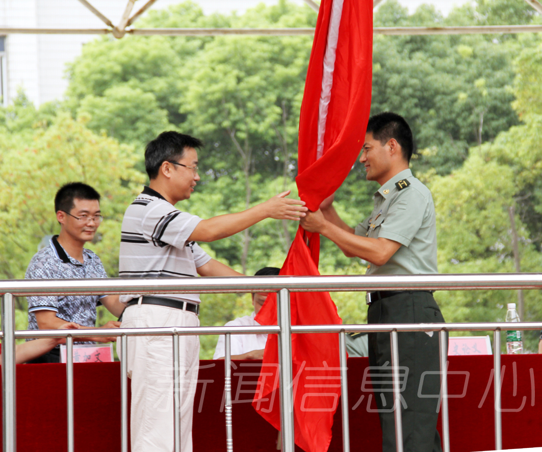 仪式,在庄严隆重的国歌声中拉开帷幕。黄加文向军训团授旗并宣布军训正式开始。