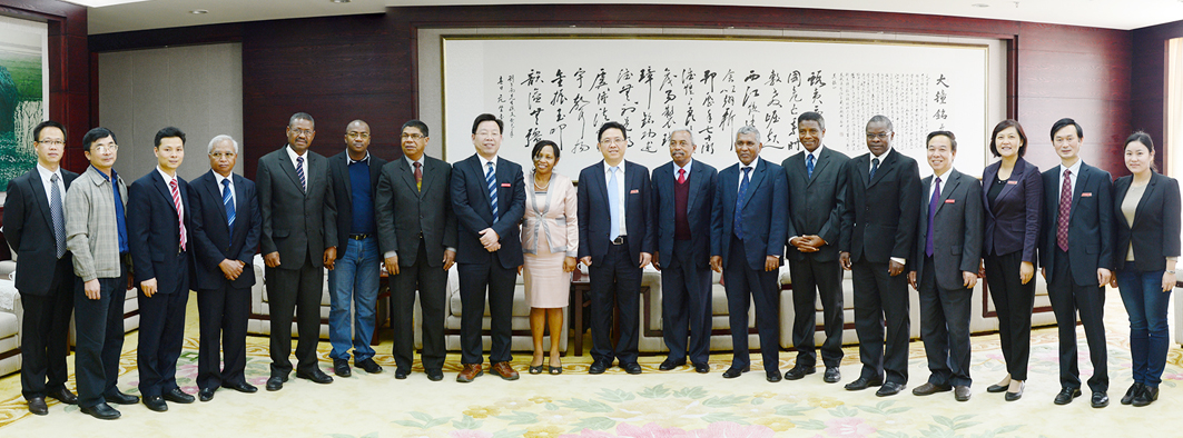 10月16日上午,马达加斯加高等教育代表团一行11人来校访问。校长梅国平、副校长张艳国在知行楼第一接待室会见了客人;校办、国际合作与交流处、国际教育学院、文学院负责人参加会谈。