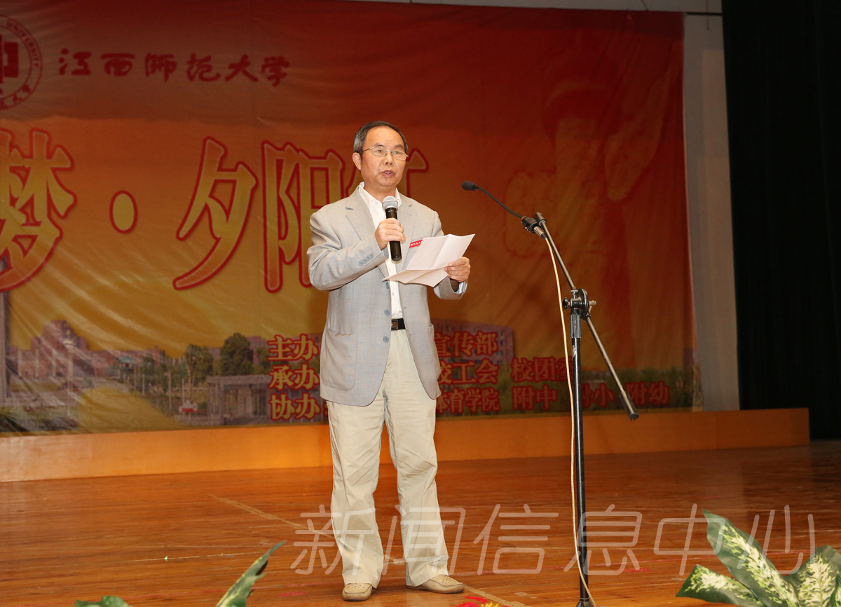 10月22日下午,我校2013年重阳节暨金婚庆典文艺演出在青山湖校区大礼堂举行。校党委副书记何小平,副校长聂剑、张艳国,校长助理熊永华,省教育厅及学校有关职能部门的负责人,离退休老同志及教工、学生近700人观看了演出。