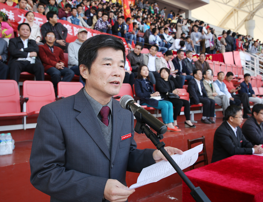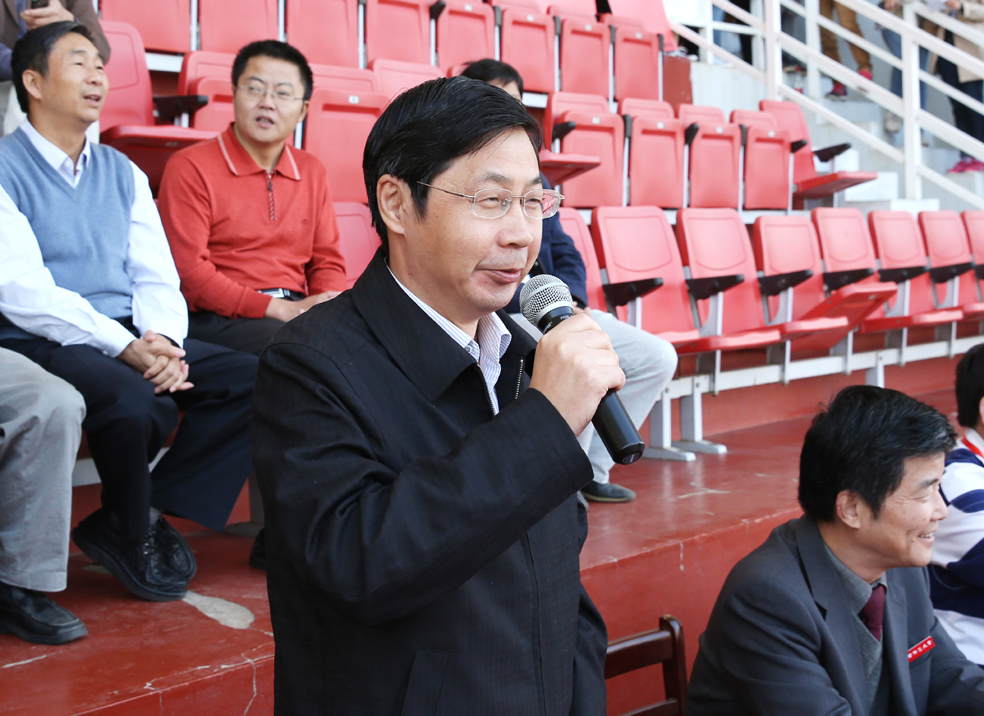 赵明致闭幕词。他代表学校党委、行政向筹备此次运动会的工作人员和积极参与服务的同学和老师表示衷心的感谢。他强调,此届运动会是对我校体育工作和师生综合素质的检阅,整个比赛和会务安排准备充分,组织周密,纪律严明,秩序井然。裁判员的坚持标准、公平公正、认真负责,以及广大师生的加油助威、热情服务和争做文明观众共同保证了运动会的圆满完成;运动员们不甘落后,敢于争先的勇气,对待成绩胜不骄,败不馁的气度以及团结友爱、互相帮助的协作精神为师大精神和校园文化增添了新的活力。他希望全校师生在今后的学习生活中将这种团结协作的精神发扬光大,牢固树立“育人为本,以德为先”的理念、勇于争先,为学校又好又快发展做出贡献。