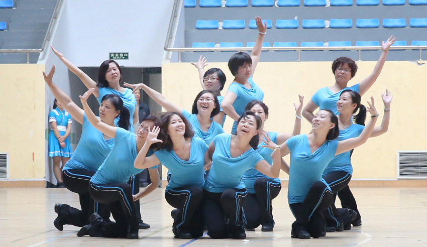 随后的表演赛异彩纷呈,各参赛队尽显风采。表演赛采用相同曲目——《回忆 原子波卡》的混合版,各参赛代表队队员身着靓丽的服饰,伴随着欢快美妙的音乐,舞动着优美的舞姿,以昂扬自信的精神面貌展示了我校教职工的风采。整齐的动作、变化的队形、甜美的笑容和动人的表演得到了在场观众的热烈喝彩和掌声。