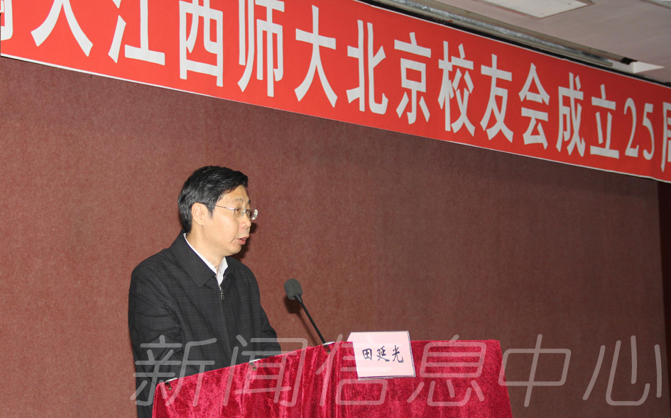 田延光首先代表母校全体师生向北京校友会成立25周年表示热烈祝贺。他深情回顾了北京校友会成立之初的艰辛历程及25年来北京校友为北京和母校做出的突出贡献,向全体在京校友介绍了母校近年来在人才培养、科研创新等方面所取得的成绩。他在讲话中说,攻读大学的时光,是一个人走向成熟的关键阶段,是奠定人生事业的基石。一日为师,终生难忘;一朝同窗,终生为友。校友与同学、与母校老师之间结成的这种天然的感情纽带,是大学不同于其他行业的独特魅力所在。他最后希望母校与广大校友能永远情深如母子,风雨同舟行。