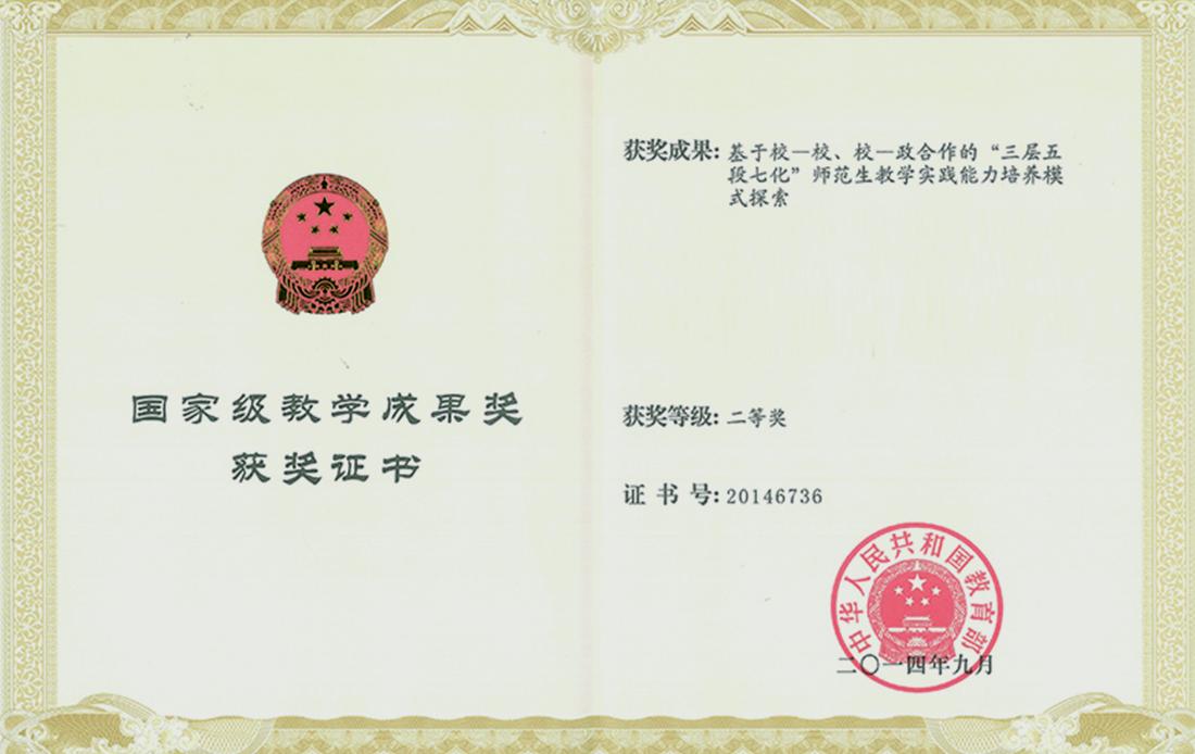 9月初,梅国平教授领衔申报的《基于校—校、校—政合作的“三层五段七化”师范生教学实践能力培养模式探索》获国家教学成果奖二等奖,实现了学校在国家教学成果奖上的新突破;12月中旬,我校申报的“基于专业领导力的中学高端教师人才培养模式改革实践”和“基于“六P式素养结构模型”的卓越幼儿园教师人才培养模式改革”等2个项目获批教育部“卓越人才培养计划”项目,实现了我校在该项目上零的突破;11月下旬,我校《大学体育理论与实践教程》、《英语专业毕业论文写作(第二版)》、《心理统计学》、《心理与教育测量(第三版)》、《中级财务会计》等5种教材入选教育部第二批“十二五”普通高等教育本科国家级规划教材;9月下旬,学校新增14个省级“本科教学工程”项目,获批项目在全省名列前茅。