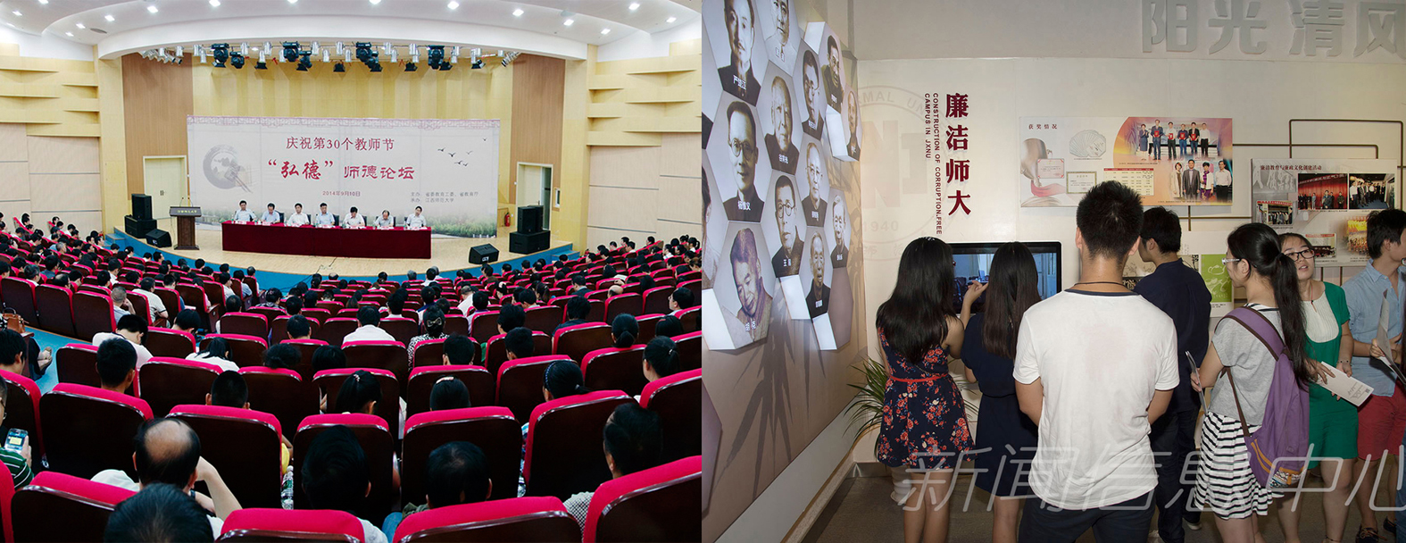 在12月28-29日召开的第23次全国高校党的建设工作会议上,我校加强意识形态工作的做法被作为大会经验交流材料印发;6月12日,我校在第21次全省高校党建工作会议上以抓好学生党建工作的做法及所取得的成效作典型经验介绍;9月24日,我校作为全省六个发言单位之一和唯一高校代表,在全省深入开展“三大工程”工作推进会上作交流发言;10月份,教育部以简报形式专题介绍了我校学生工作干部队伍建设做法,并予以推广,在全国高校引起较大反响;党委统战部再次喜获“中国统一战线宣传先进单位”荣誉;师德师风建设迈开大步,倡议举办的师德论坛被上升为省委省政府庆祝教师节主要活动之一,制定加强新形势下师德师风建设的实施办法,组建优秀教师宣讲团并开展全校巡回宣讲,发起成立全国第二家教师志愿服务协会;组织参加第二届全国高校廉政文化作品大赛中获6项一等奖、1项二等奖、1项三等奖和1项公益广告,成绩在全国参赛高校中名列第一;4月2日,微电影《选择》获江西省反对“四风”微电影大赛十佳作品奖;9月28日,我校廉洁文化教育馆(全省高校首家)正式开馆,这是我校深入推进廉政文化进校园活动的又一创新举措;7月下旬,我校选送的校团委官方微博“@青春师大”被评为全国十大最具影响力团委微博且排名第一,申报的校园文化优秀成果《江西师范大学“@青春师大”官方微博》,获得教育部第七届高校校园文化建设优秀成果评选三等奖。