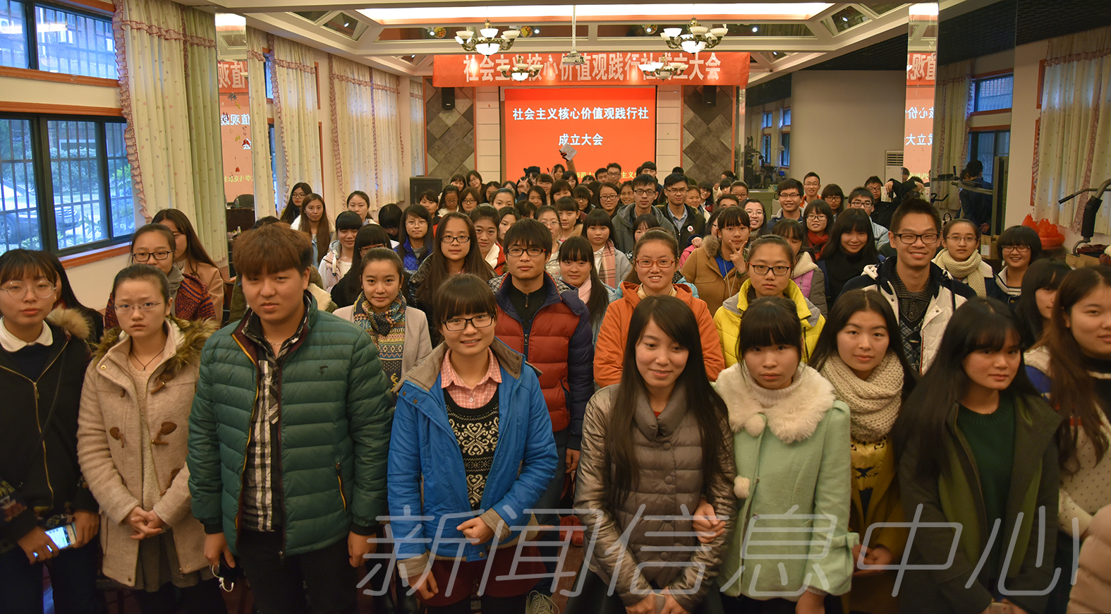 为积极创新思想政治教育体系,打造思想政治教育的新平台,12月8日,由学生自主发起的我校大学生马克思主义理论学习社团“社会主义核心价值观践行社”正式成立。