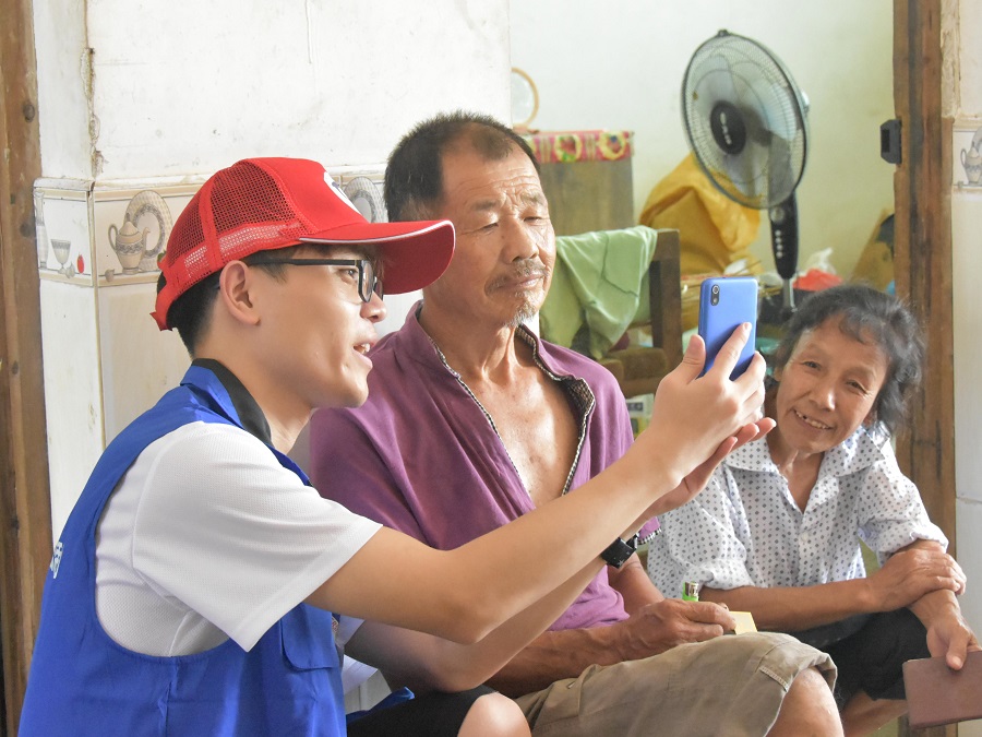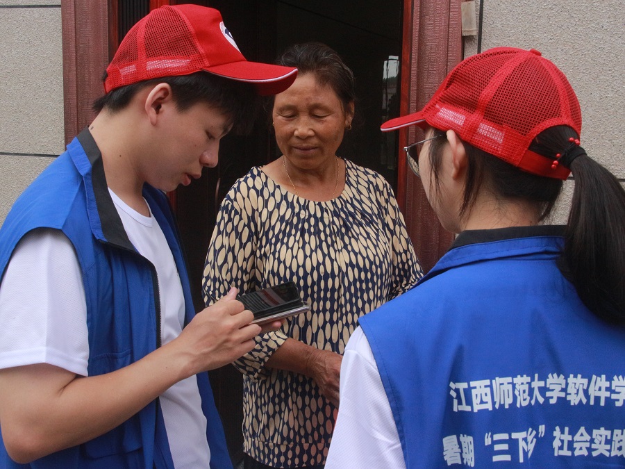 中国青年网吉安7月4日电(通讯员 龙暄颖 钟婉欣)随着生产生活数字化程度不断提高,数字化时代老年群体的融入问题备受关注。6月28日,江西师范大学软件学院“喜迎党的二十大,‘程’就梦想向未来”2022年暑期“三下乡”社会实践队在吉安市沐江村协助当地村委前往各位老年人家里开展智慧助老实践活动。重点解决乡村老年人不会使用智能手机,以及因为“数字鸿沟”而导致诸多政策“最后一公里”尚未打通等问题。