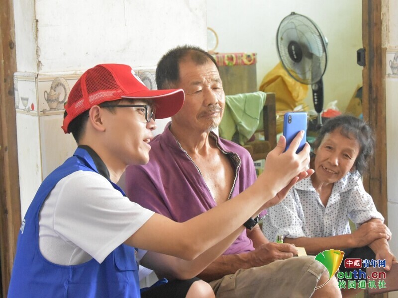图为实践队队员帮助老年人进行人脸识别操作。中国青年网通讯员 龙暄颖 供图