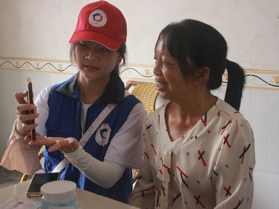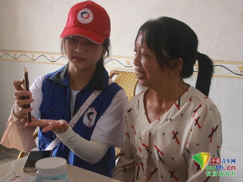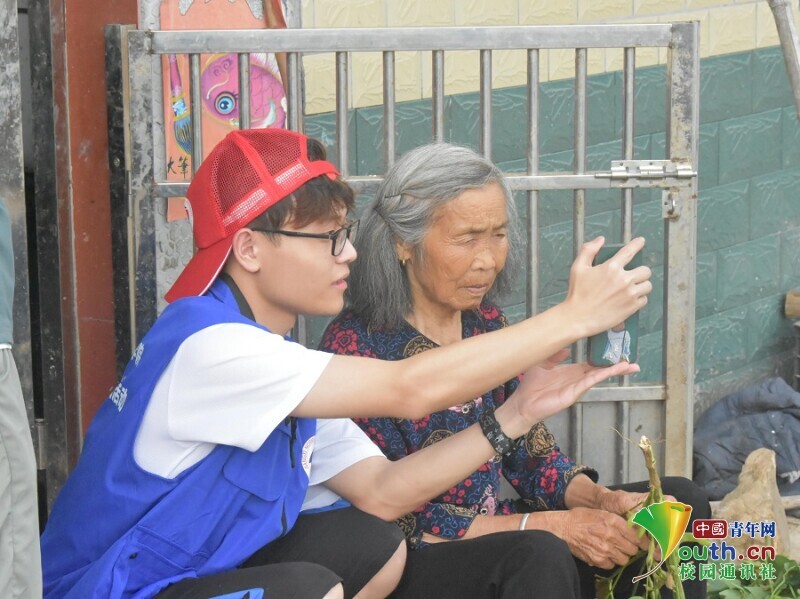 图为实践队队员帮助老年人下载国家反诈中心APP。中国青年网通讯员 龙暄颖 供图