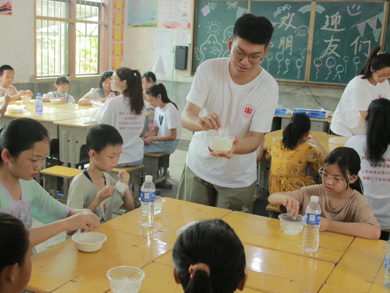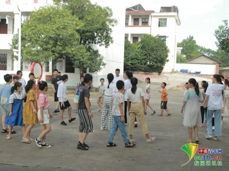 中国青年网吉安 7月1日电(通讯员:龙媛媛) 6月30日上午,“喜迎二十大,红色名村行”——江西师范大学教育学院2022年暑期“三下乡”社会实践服务队的队员们于上午八点在罗塘中学面向康克清红军小学的小朋友们开展了“团结向前冲——素质拓展游戏”。通过游戏“大风吹”,活跃了小朋友们的思维,解除了小朋友们之间的陌生感,使他们能够积极融入新团队;通过准备纸浆画的材料“纸浆”拉近了队员们和小朋友们的距离,通过“搭桥过河”游戏,增进了小朋友们团结协作的能力。