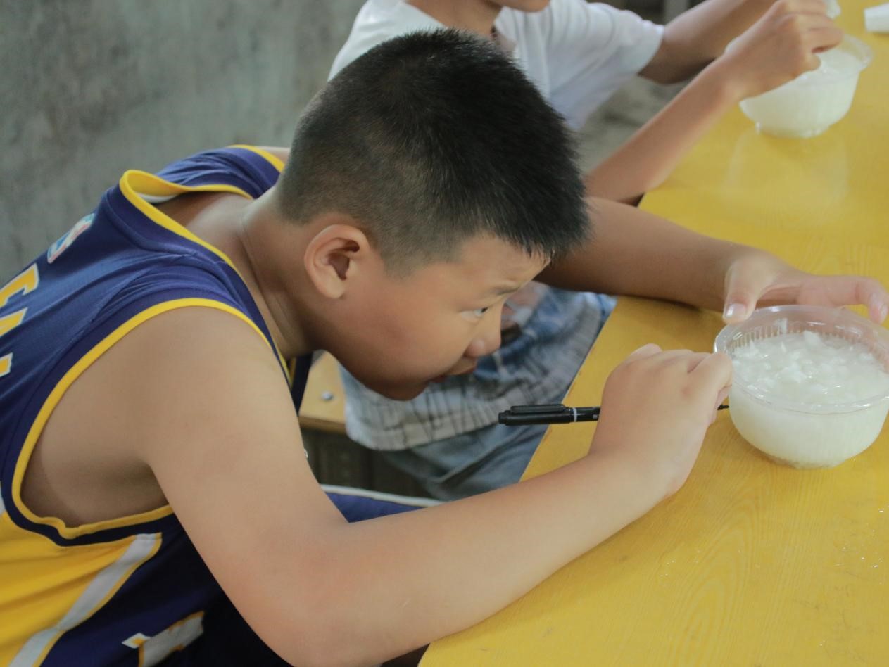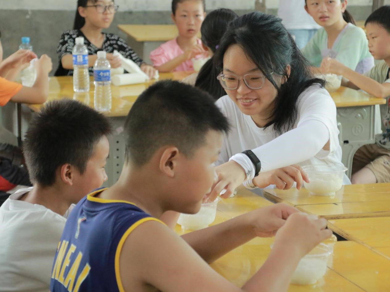 图为队员和小朋友们一起制作纸浆,队员和小朋友们相处融洽,笑意写在他们的脸上,溢着满足的愉快。中国青年网通讯员 龙媛媛 摄