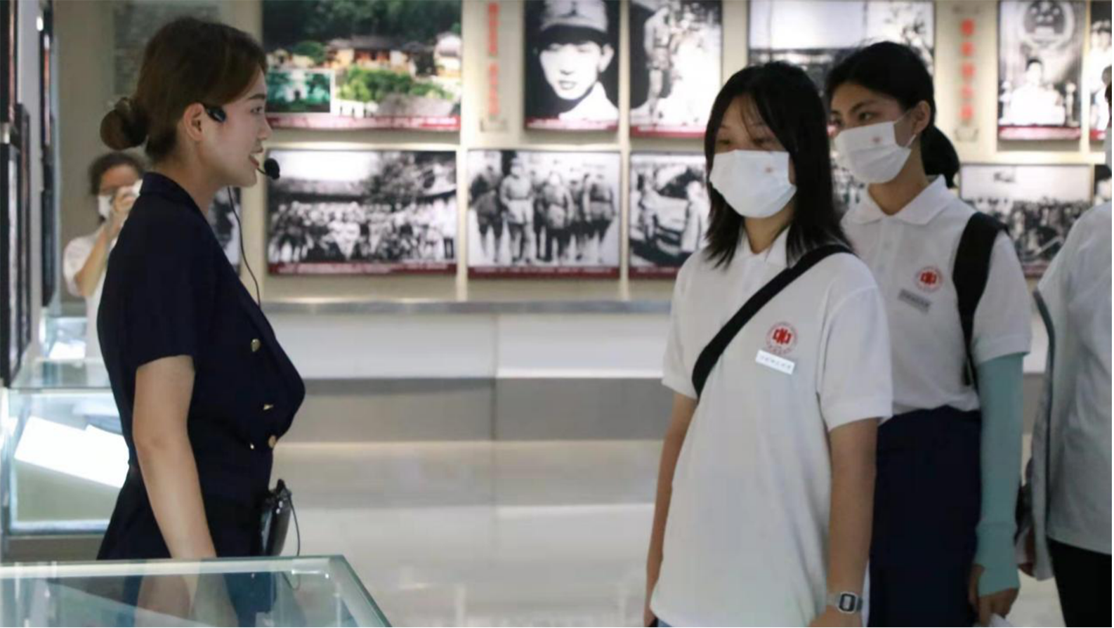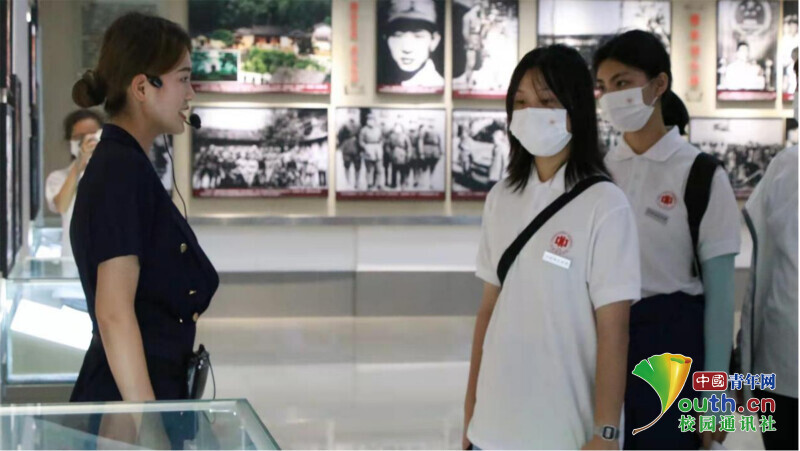 图为实践队成员认真听纪念馆讲解员介绍胡耀邦同志生平事迹。中国青年网通讯员 何颖 摄