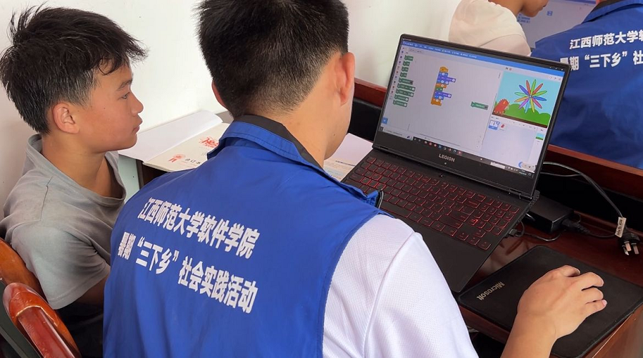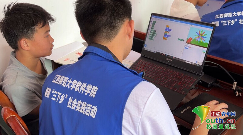 中国青年网吉安7月7日电(通讯员 龙暄颖 钟婉欣)为响应国家2022年5月13日发布的《义务教育课程方案和课程标准》。6月30日至7月1日,江西师范大学软件学院2022年暑期“三下乡”社会实践队发挥专业特长,结合专业特色,将“少儿编程”启蒙课程带到龙田乡沐江村,以科技知识向乡村教育赋能。