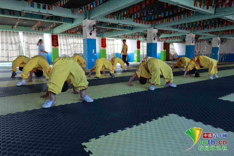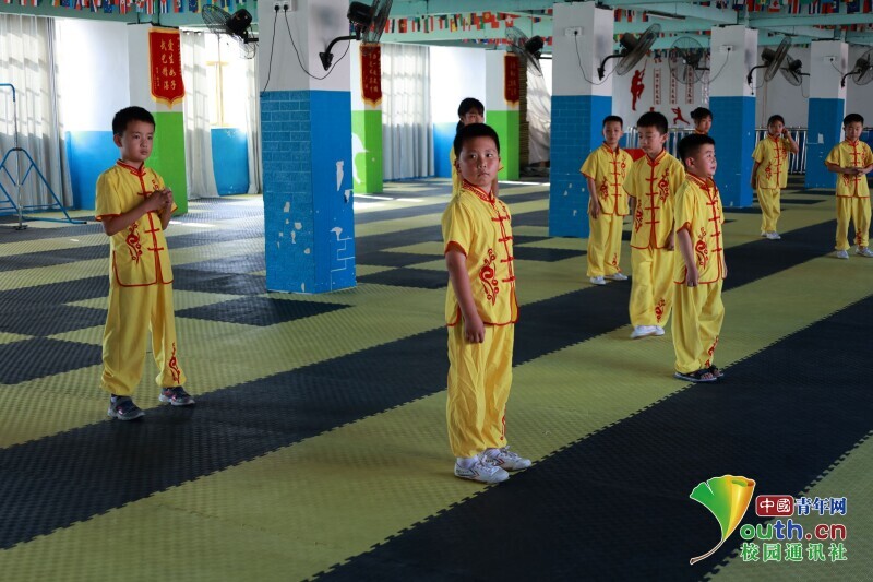 图为武馆小学员们训练时的状态。中国青年网通讯员 张稳健 摄