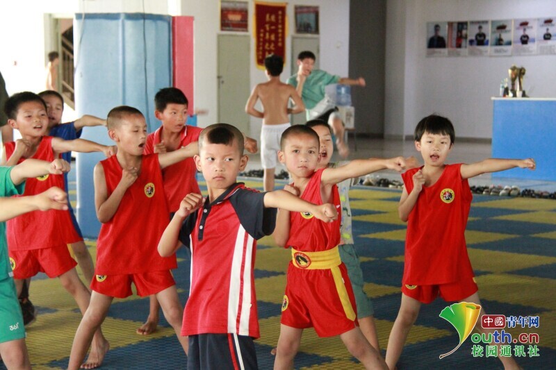 图为小学员进行散打基本动作练习。中国青年网通讯员 万雯思 摄