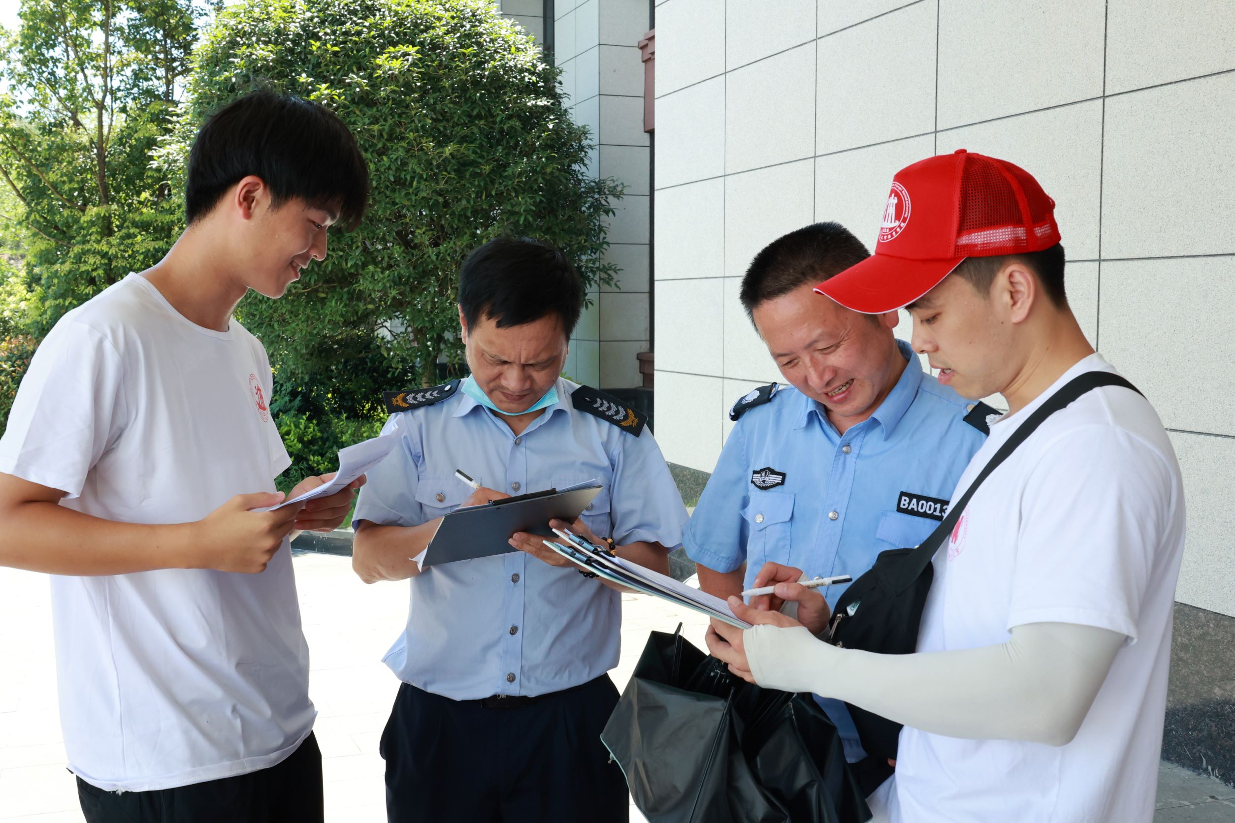 图为社会实践服务队队员在社区进行调查问卷工作。中国青年网通讯员 张稳健 摄