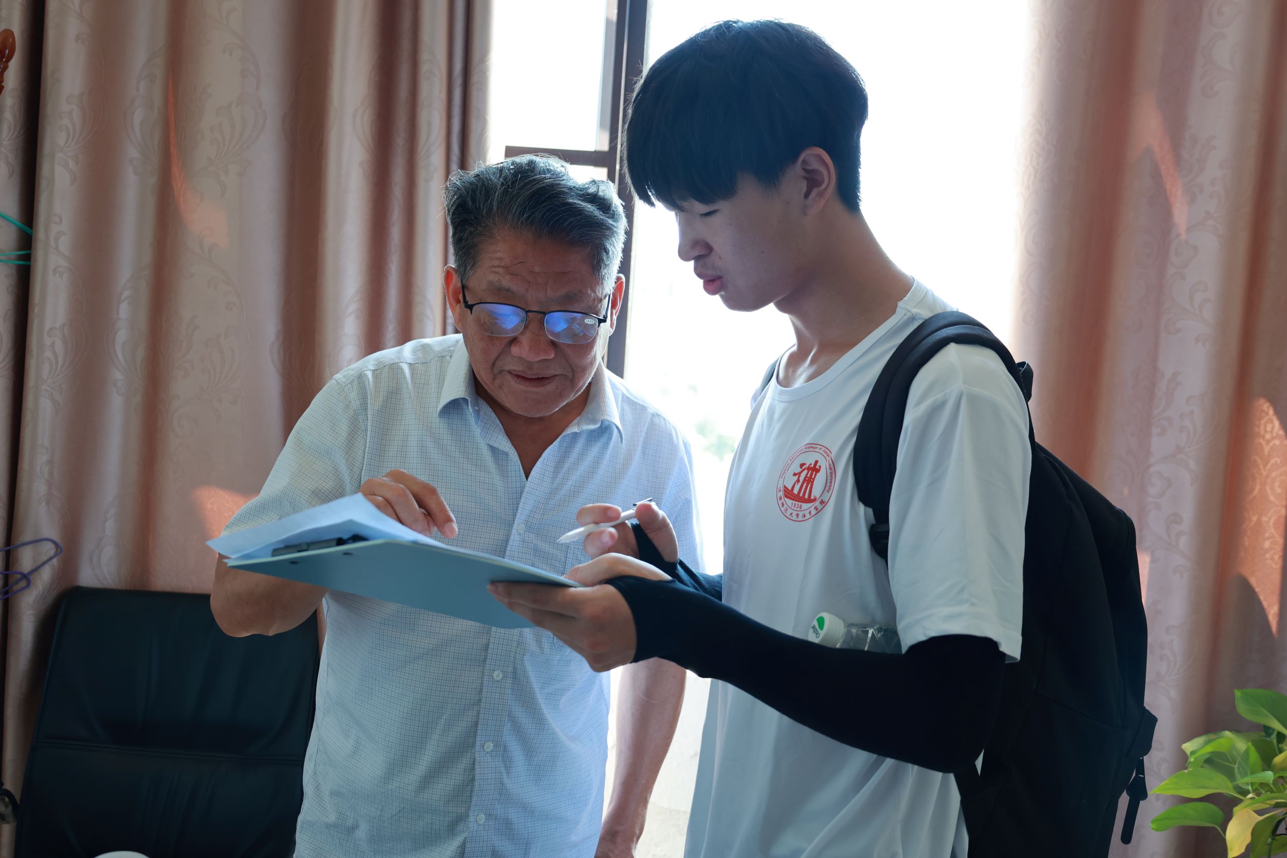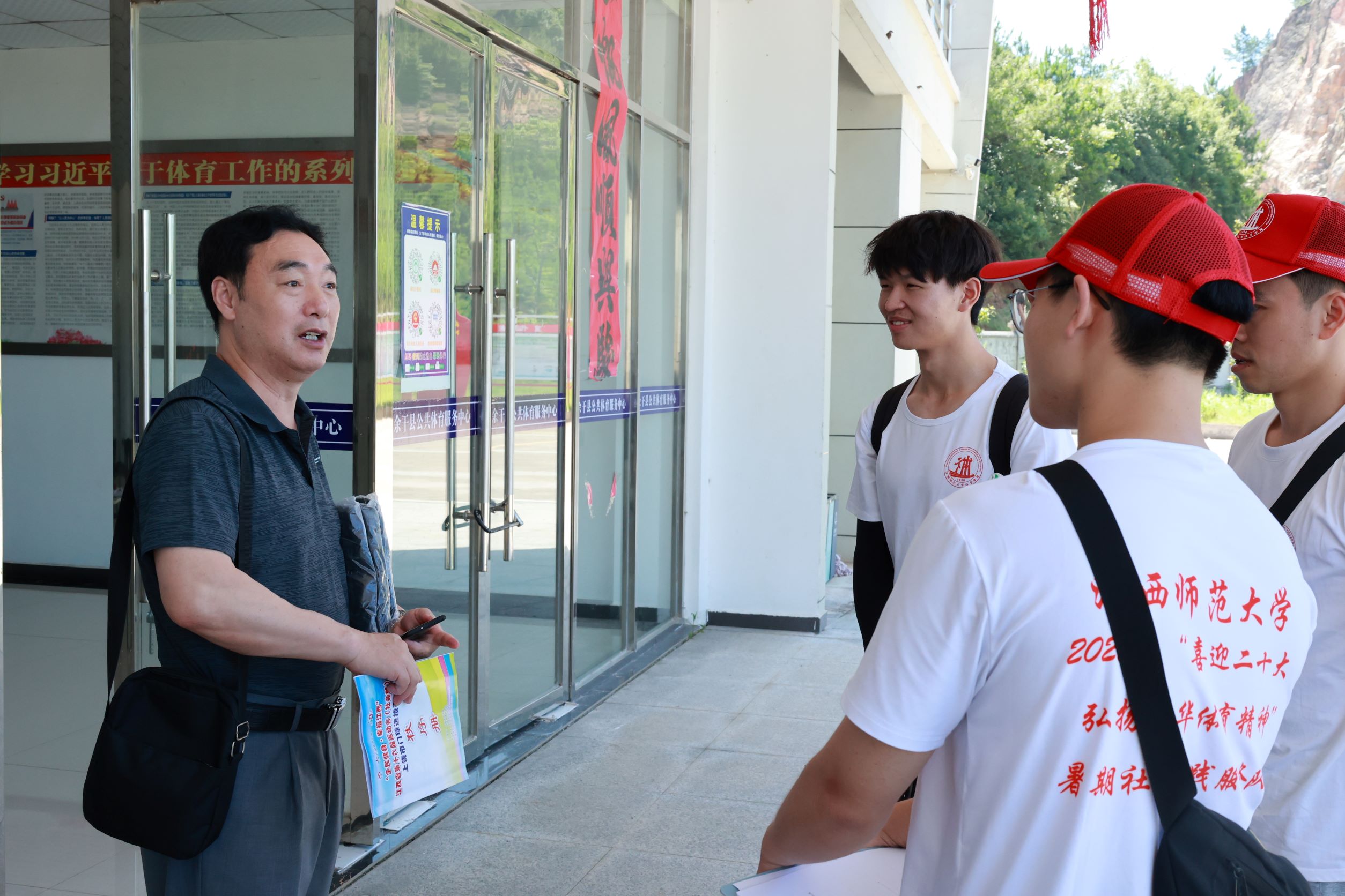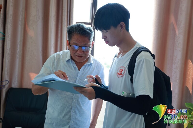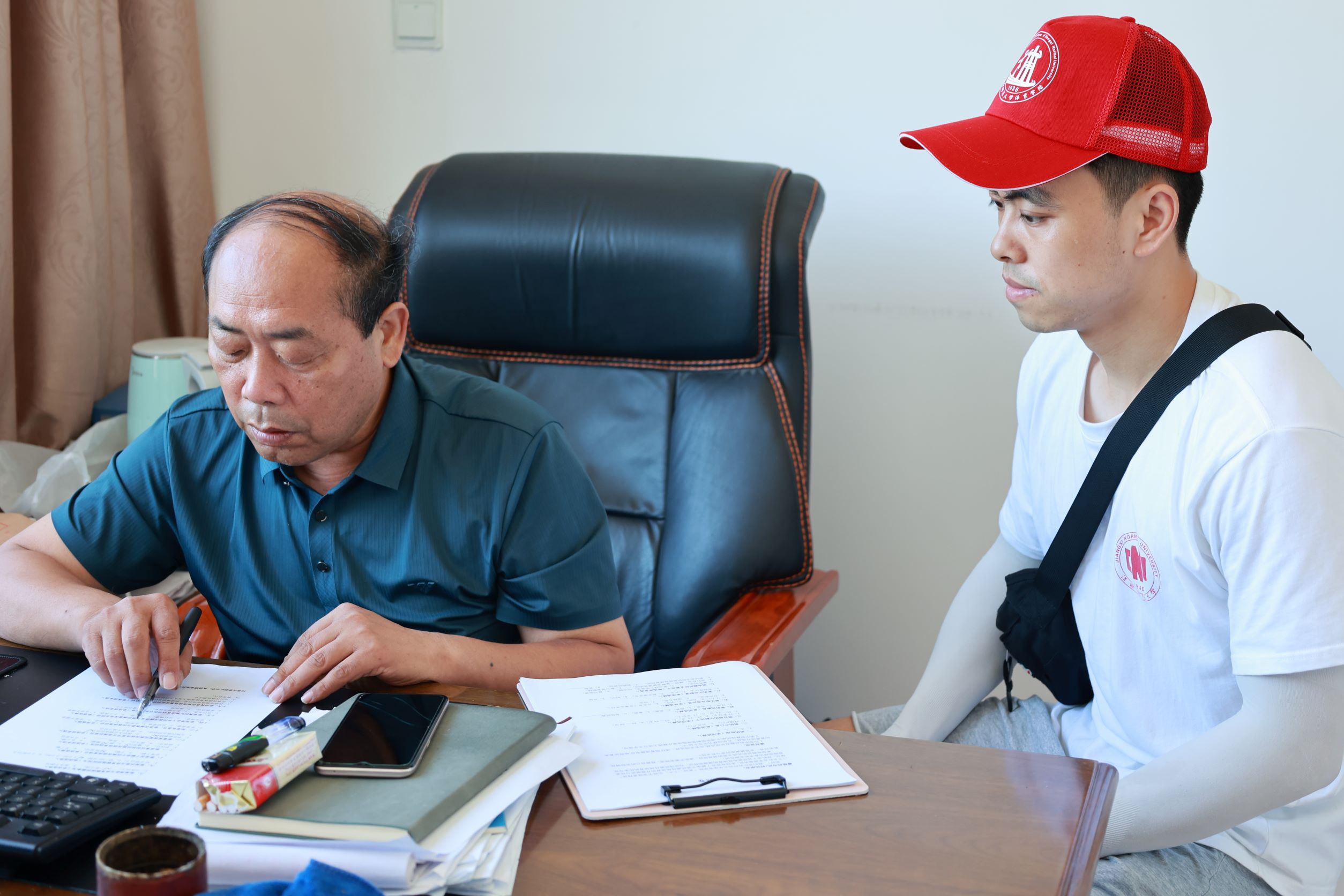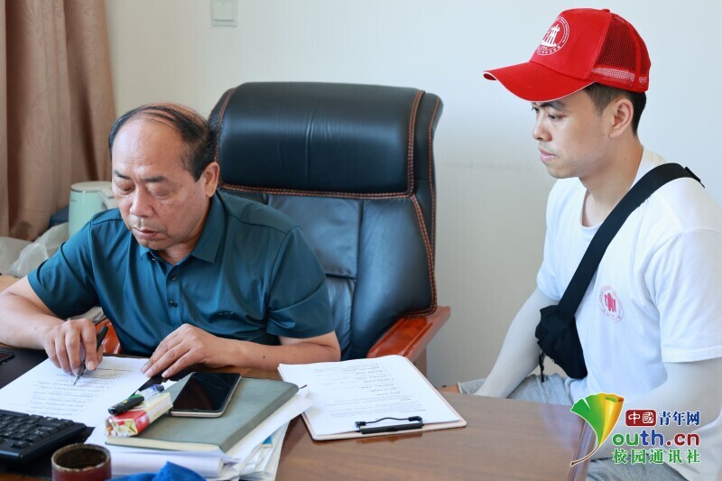 图为社会实践服务队队员帮助余干县全民健身中心领导进行问卷填写。中国青年网通讯员 张稳健 摄