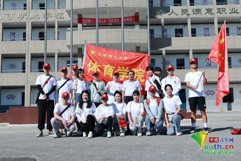 图为江西师范大学体育学院“喜迎二十大,弘扬中华体育精神”暑期社会实践服务队合影。中国青年网通讯员 张稳健 摄