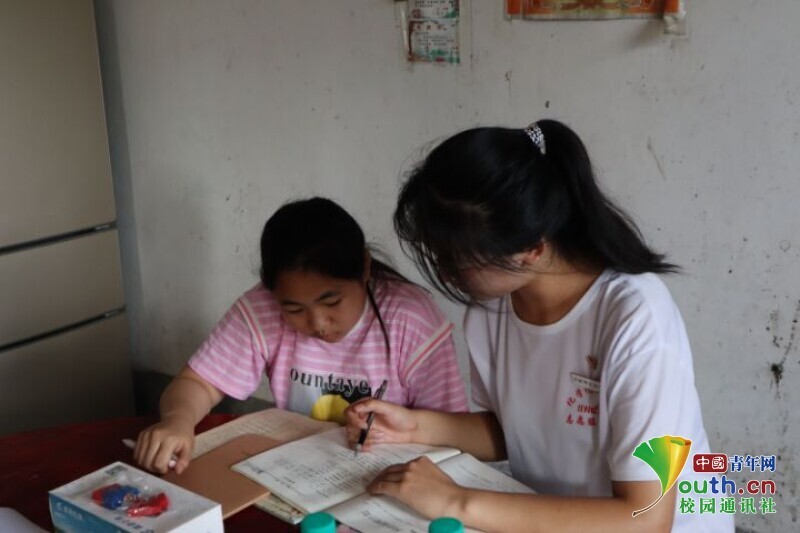 图为实践队员细心、耐心、用心地辅导小朋友们的暑期作业。中国青年网通讯员 田瑞婷 供图