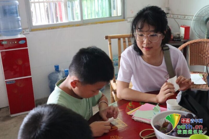 中国青年网江西于都7月3日电(通讯员 胡靖玥)教育是民族振兴和社会进步的基石,对一个人的成长起着至关重要的作用。为丰富孩子们的假期生活,帮助孩子们合理安排好假期时间,江西师范大学化学化工学院暑期“三下乡”实践团的成员们于7月3日精心准备了许多丰富多彩的课程,为水头小学附近的孩子们带来了不一样的知识,带领他们去感悟不一样的世界。本次家教活动在为孩子们提供假期学业辅导的同时,也在一定程度上助力了孩子们的全面发展,还充分发挥了师范类院校的专业性优势,对提高大学生的专业素质,增强其社会奉献意识,锻炼其社会实践能力都有着重要的作用。
