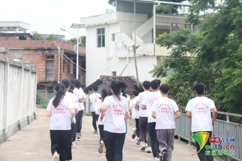 图为实践队员的防洪小队长确定无人员遗漏后,根据预定路线迅速避洪。中国青年网通讯员 周柳烨 摄