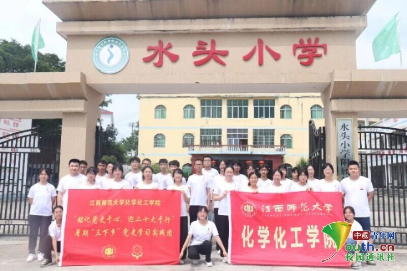 图为实践队员于演练结束后在水头小学门口的合照。中国青年网通讯员 周柳烨 摄