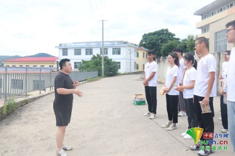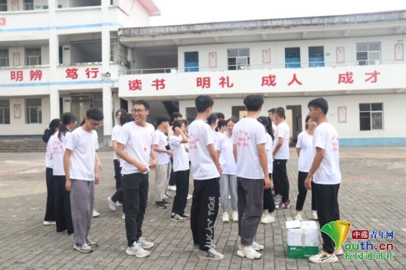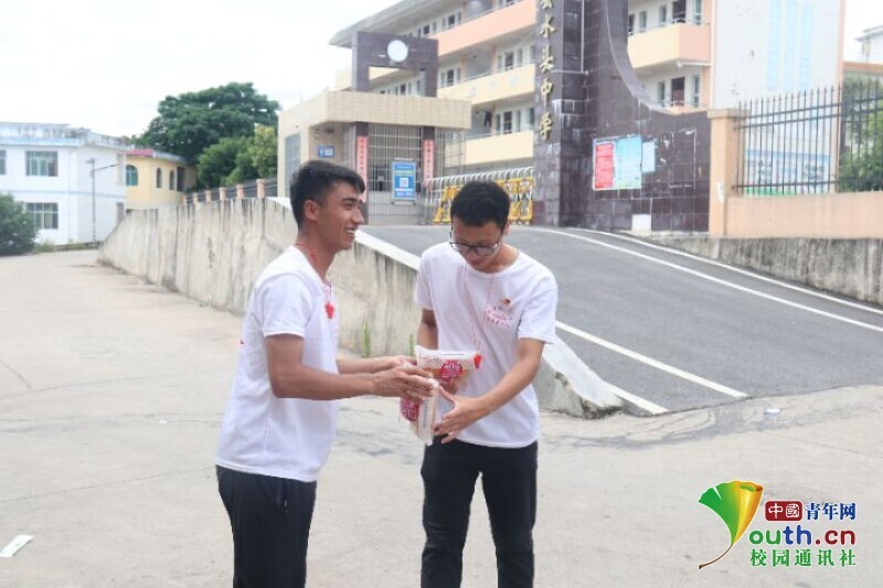 图为实践队员到达安全地带后派发基本生活物资。中国青年网通讯员 周柳烨 摄