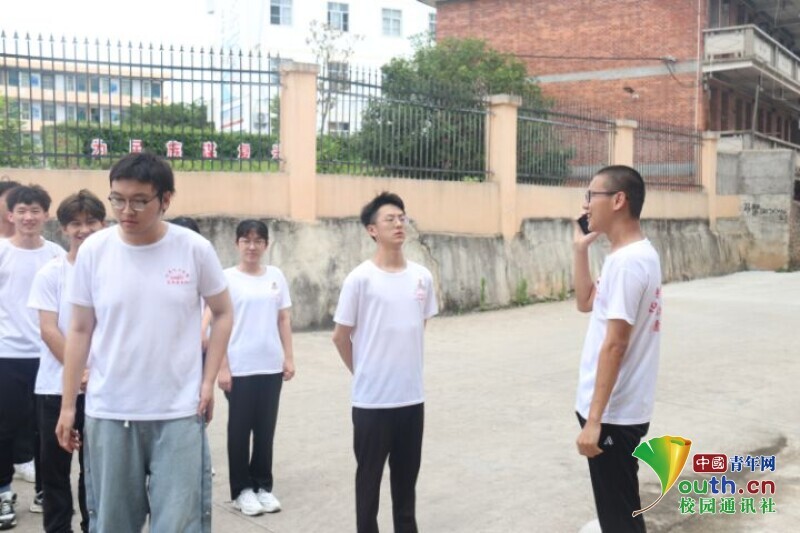 图为实践队员到达既定紧急避难场所后,再次清点并确认人员有无受伤情况。中国青年网通讯员 周柳烨 摄