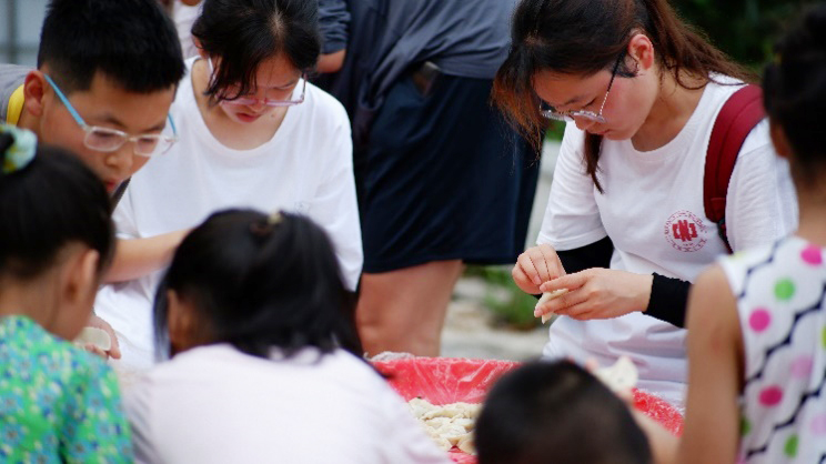 “民生在勤,勤则不匮”。实践队运用在“农耕文明”劳动教育特色活动中学习到的知识,前往东门社区,为村里的孩子们进行“包饺子”的示范讲解并与孩子们分组进行练习和实践。在大家共同认真努力下,孩子们码出一盘整齐漂亮的“元宝”饺子。