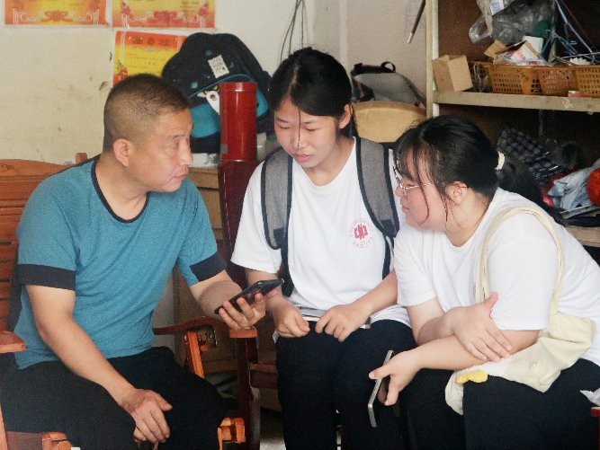 在北门村,实践队在村干部的带领下走村入户,实地走访,挨家挨户帮助村民办理和激活电子医保卡。一户户下来,队友们慢慢熟练,逐渐解决了北门村村民在激活医保电子凭证中所遇到的难题,同时也获得了村民的感谢和肯定。