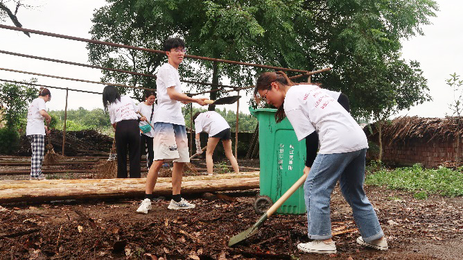 改善农村人居环境作为乡村振兴战略中亟须解决的重点问题,实践队在村干部的引导下,前往杜家村村口进行“乡村大清扫”活动。面对雨后稍显泥泞的地面,大家齐上阵,拿起扫帚、扛上铁锹,清理村落内的垃圾死角。经过服务队成员的一番努力,村容村貌焕然一新。