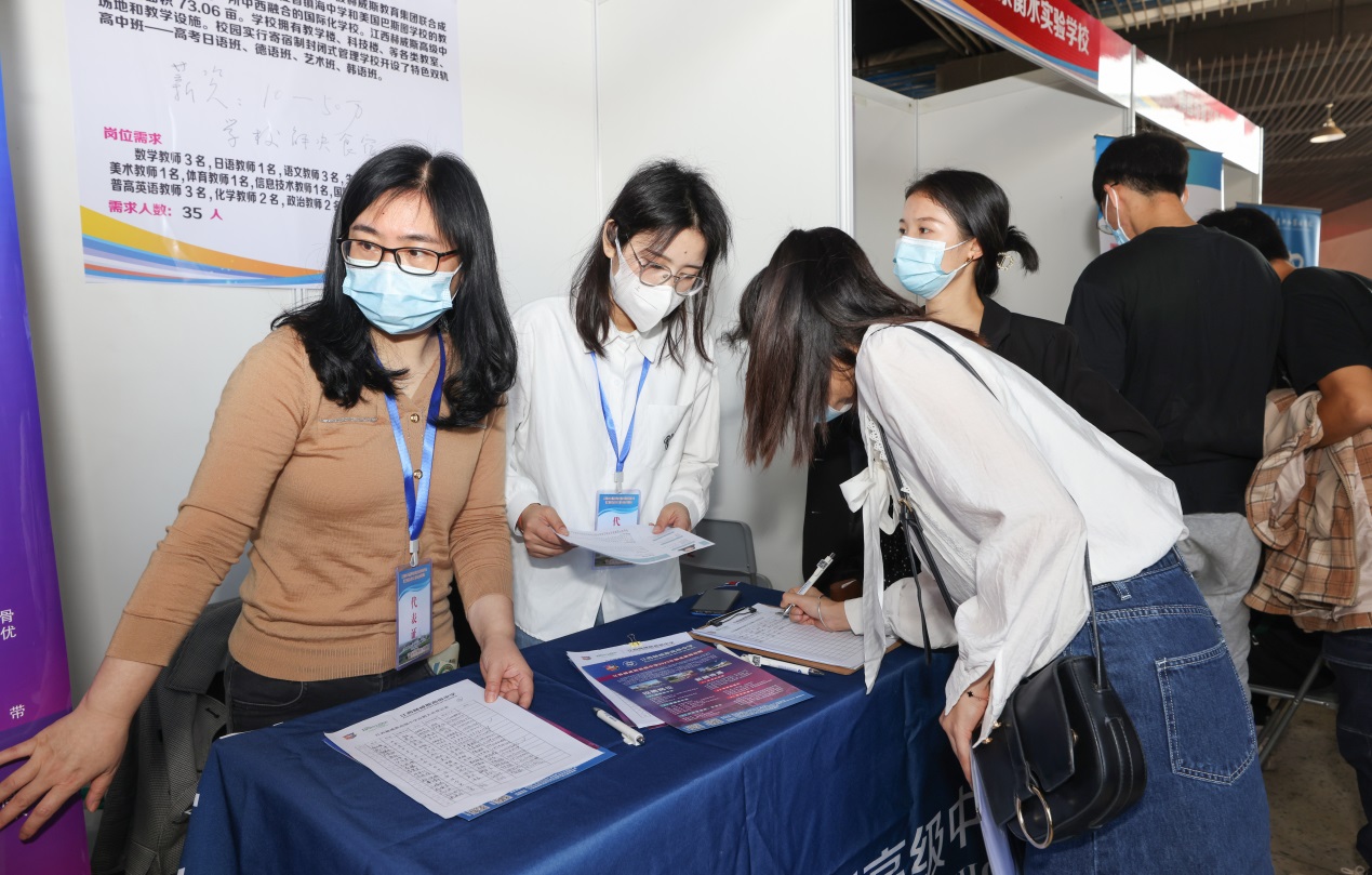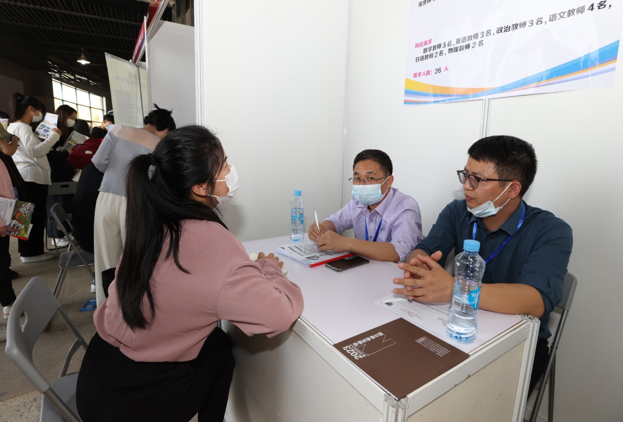 招聘会现场秩序井然、人头攒动,毕业生们积极与企业招聘人员沟通交流,选择适合自己的岗位;热烈的气氛还吸引了很多非毕业班的学生前来驻足聆听,提前了解单位招聘相关内容。本次招聘会共邀请191家参会单位,其中教育类107家,非教育类84家;为我校毕业生提供了7821个就业岗位,其中教育类岗位4301个,非教育类岗位3520个。