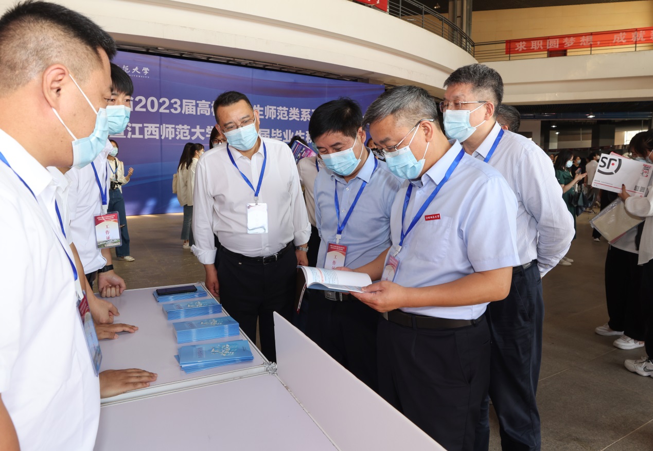 11月12日,“江西省2023届高校毕业师范类系列专场招聘会暨江西师范大学2023届毕业生秋季招聘会”在瑶湖校区举行。校党委书记黄加文,校党委委员、副校长刘俊,省人力资源和社会保障厅就业创业服务中心主任郭锦亮到现场指导,党(校)办、招生就业处相关人员一同参与。