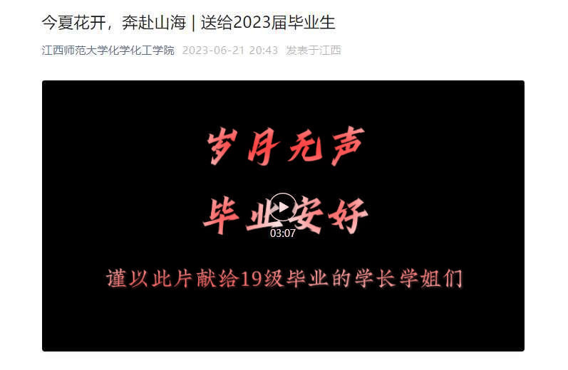 拍摄毕业祝福微视频。学院为2023届毕业生精心制作“岁月无声,毕业安好”毕业祝福微视频,采集学院各年级同学对毕业班学长学姐最诚挚的祝福。