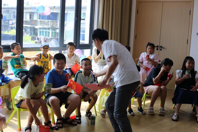 “老师,我知道答案,五星红旗有5颗星星”,这是实践队在“童心圆梦”公益性社区少年宫开展“情暖童心,红心向党”主题活动。实践队员们正带领小朋友们用黏土、油画棒、剪纸创作“我爱我的祖国”主题图画,一位亲切和蔼的人民领袖、一面鲜艳明亮的五星红旗、一扇生动形象的百福门......孩子们用一双双稚嫩的小手勾勒出一幅幅色彩艳丽的手工作品,用七色彩笔、简单文笔描绘对党和国家的热爱与敬仰,饱含着一颗颗赤诚的童心。