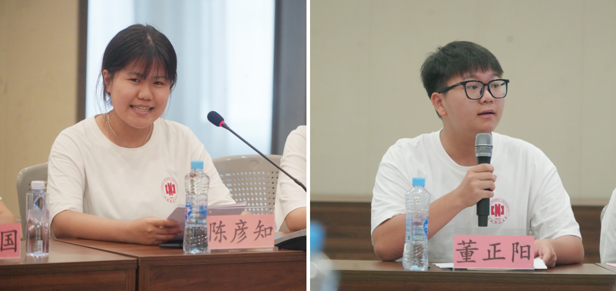 新闻与传播学院陈彦知、化学与材料学院董正阳2位队员代表分别发言,分享实践体会和收获。