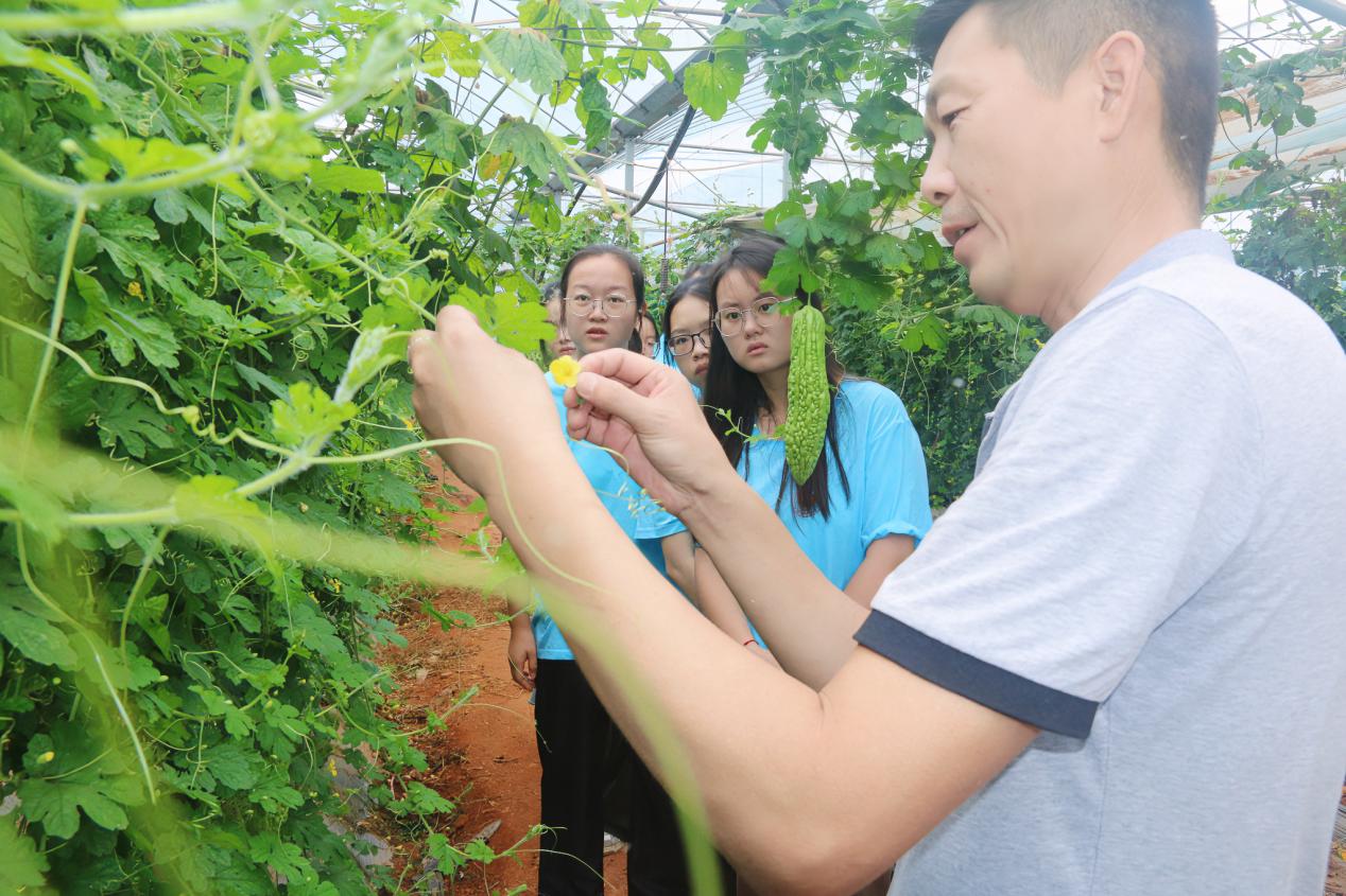 7月13日,实践队深入智慧农业大棚进行实地探访。队员们通过亲身体验人工授粉、果实采摘等环节,实地了解滴灌系统、智能环控等现代农业技术的创新应用,切身感受到科技赋能与精细管理在现代农业中的协同效应。实践队将系统总结调研成果,深入思考如何让科技创新更精准地服务于农业生产各环节,为推进农业现代化贡献青年智慧。