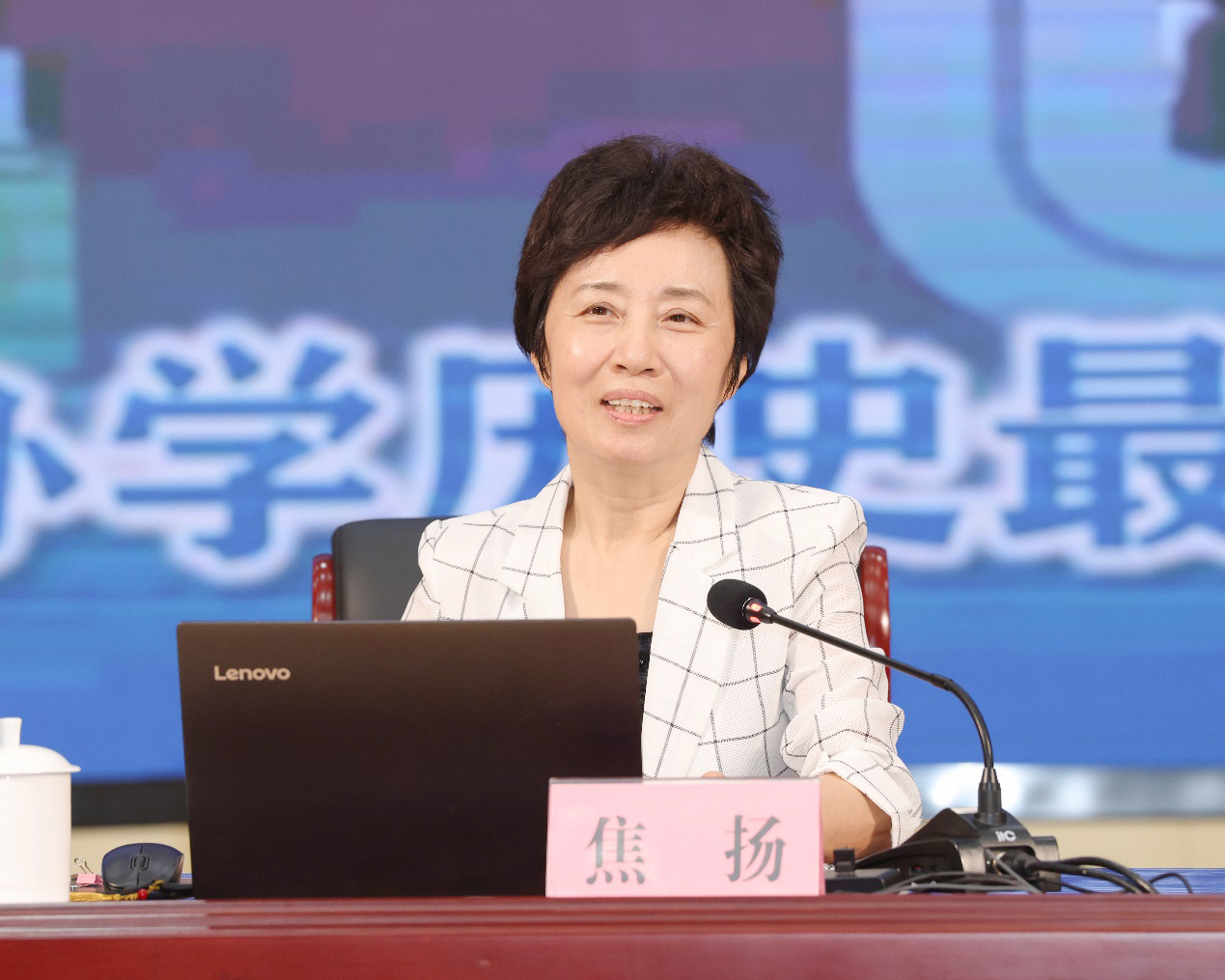 报告会上,焦扬以“弘扬践行教育家精神为加快建设教育强国造就更多大国良师”为主题,从“深刻领会习近平总书记关于教师队伍建设的重要论述”“深入把握师德师风建设新局面新任务”“用教育家精神铸就新时代大国良师丰碑”三方面,结合教学科研育人经历,阐述了深刻学习领会习近平总书记关于教师队伍建设重要论述的重要意义,强调要从中华民族文明发展、道德建设的高度看待教师地位,从中国特色社会主义事业薪火相传的角度看待教师使命,从教育发展的系统跃升、改革创新的维度看待教师作用。焦扬结合新媒体时代社会舆论关注的几类师德问题,她强调,要以德铸魂,锻造赤诚之心;以文化人,厚植文化之根;以行育师,激发报国之志;以制兴教,铺就发展之路,努力弘扬践行教育家精神,共同书写好“教育强国,教师何为”的时代答卷。