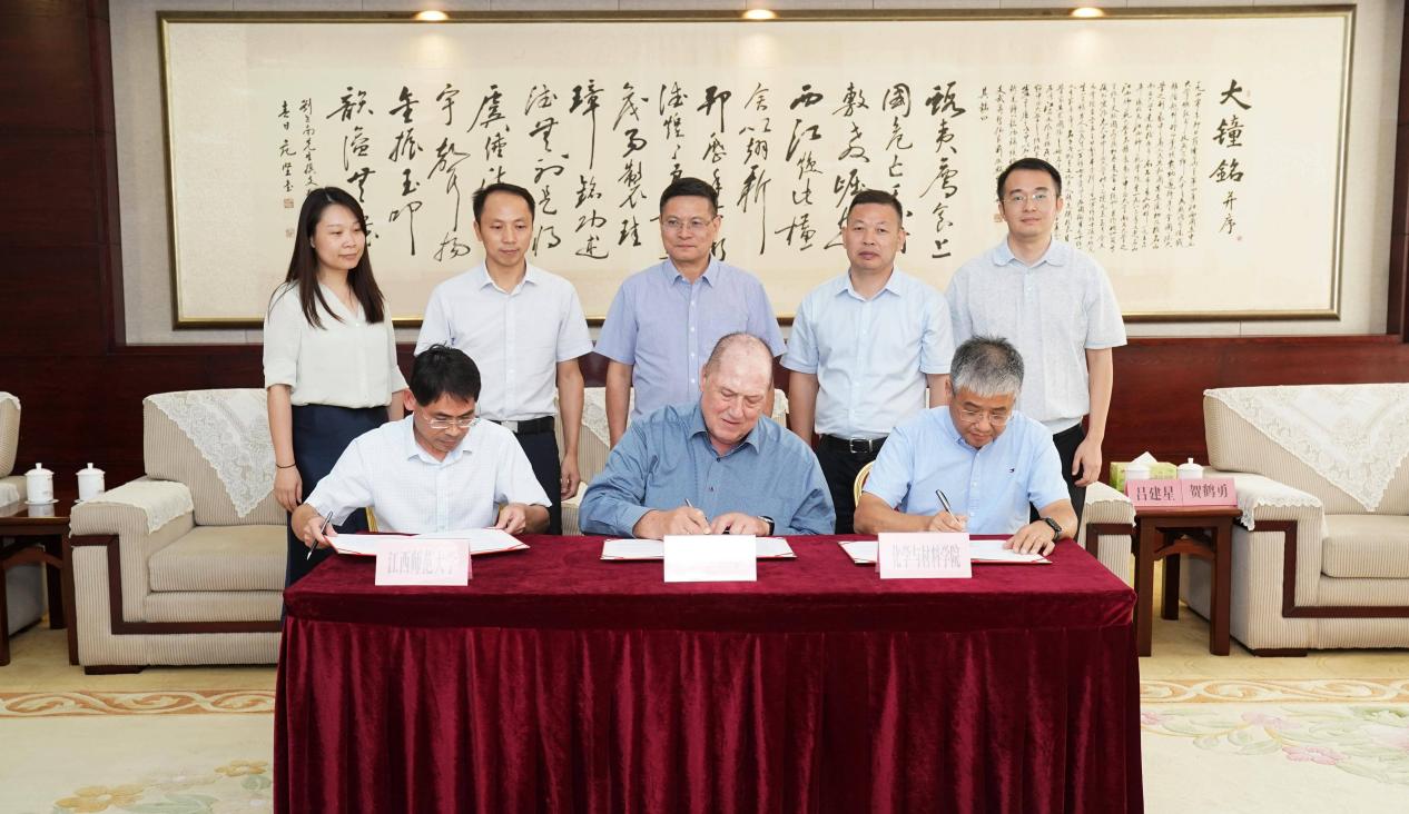 陈芬儿为Reinhard Karge教授颁发聘书,并代表学校对其加盟江西师范大学表示热烈欢迎,期待Reinhard Karge教授整合国际制药和精细化工领域的丰富资源,助力学校提升科研成果转化效能,有效促进学校“人才链、创新链、学科链、产业链”深度融合,增强学校国际影响力,为地方经济社会发展与行业进步提供更强支撑。