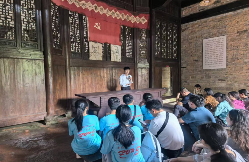 随后,师生们移步中共湘赣边第一次代表大会旧址,围站在当年会议召开的厅堂内聆听讲解。讲解员指着墙上的会议场景复原图,串联起秋收起义与井冈山的关联:“正是秋收起义保存的火种,为湘赣边根据地创建奠定基础,这次大会更明确了‘深入土地革命’的方向。”有同学看着展柜里的会议记录手稿感慨:“从武装起义到根据地建设,每一步都是革命先辈的初心坚守。”整场探访让红色信仰在历史场景中愈发坚定。
