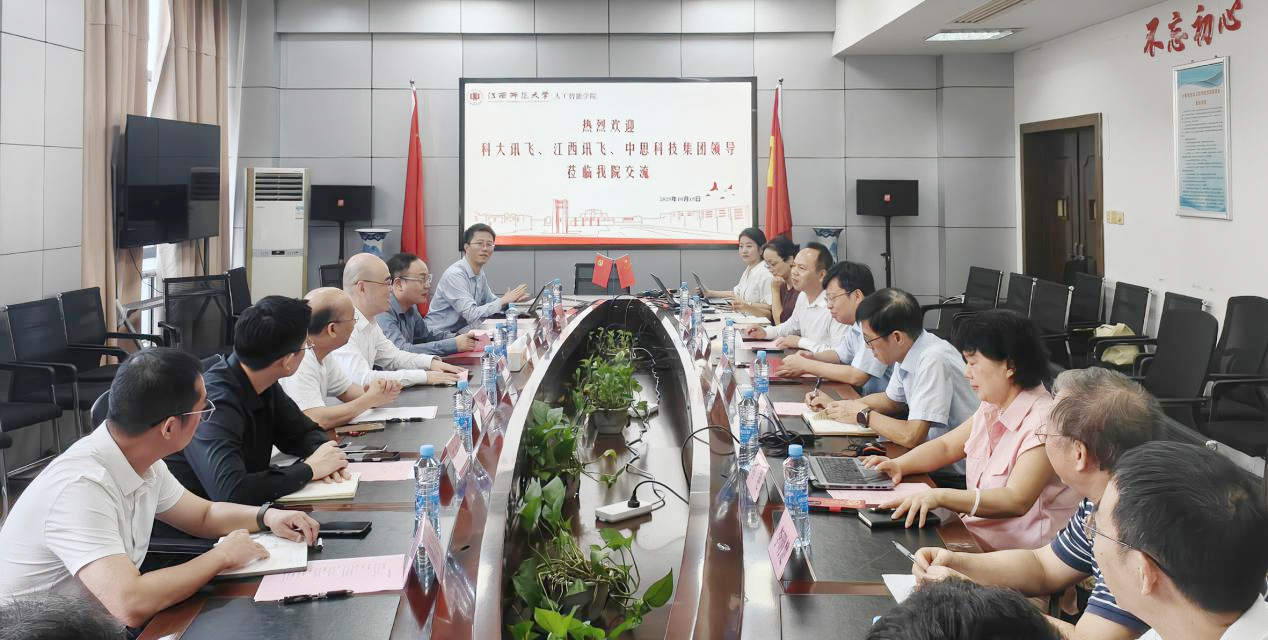 10月15日上午,科大讯飞股份有限公司、中思科技集团等企业客人来校调研交流。校党委书记朱小理在知行楼会见来宾,校党委副书记汪洋在人工智能学院主持召开座谈会,学校相关部门、学院负责人及教师代表参加。